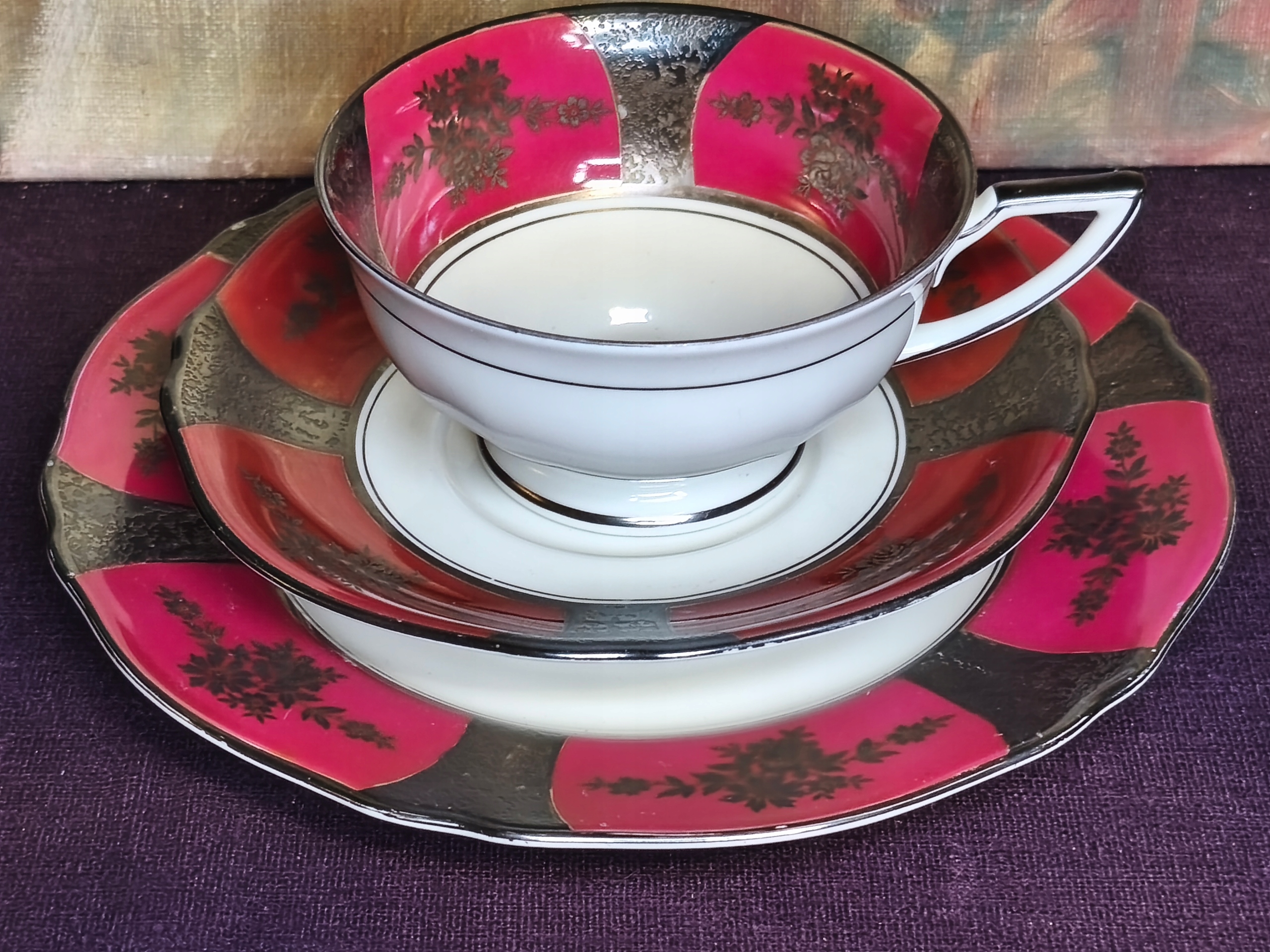 Красиво украшенный сервиз для завтрака от Нижнесилезского фарфорового завода Koenigszelt, ныне Явожина-Сленска. В форме видна подпись времен Первой мировой войны, январский стиль деко. Редкое украшение. Фарфор в хорошем состоянии, очень мелкие потертости. Очень хорошо сохранившиеся цвета. Чашка высотой 5,5 см, диаметр наполнителя 10 см, основание 14,5 см и тарелка десертная диаметром 19 см. Рекомендую коллекционерам марки Koenigszelt.