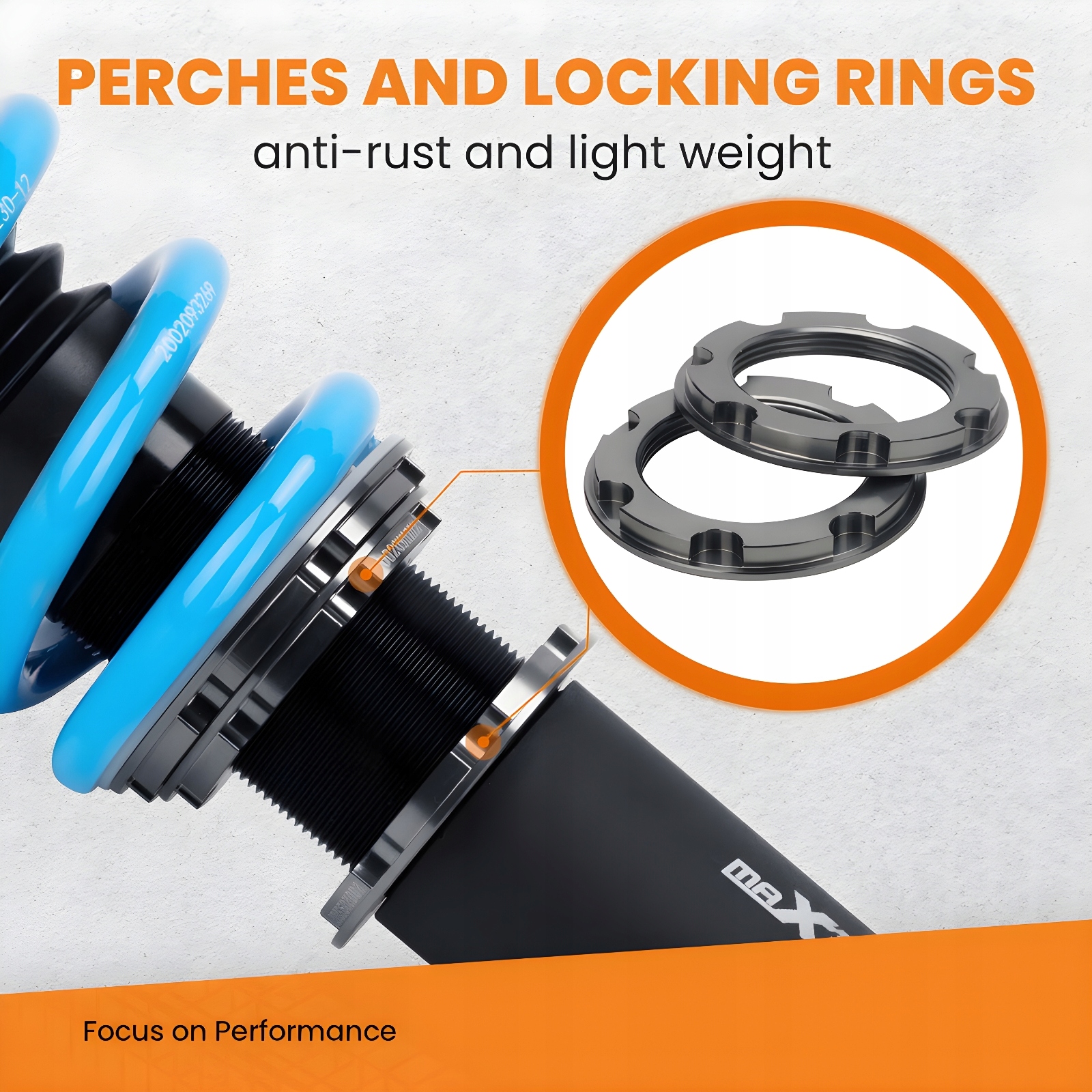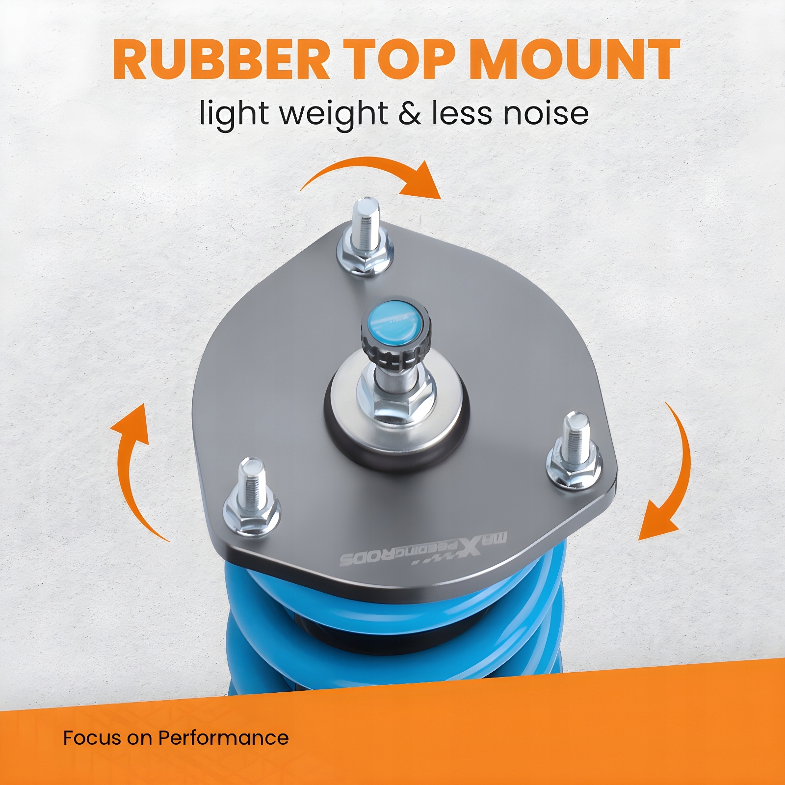4. Регулируемый амортизатор на 24 щелчка – позволяет идеально настроить винтовую подвеску. Для обеспечения комфорта вождения установите самую мягкую настройку демпфирования. Для более динамичной езды установите их на 16 нажатий. Установите полную жесткость для редких трековых дней.
