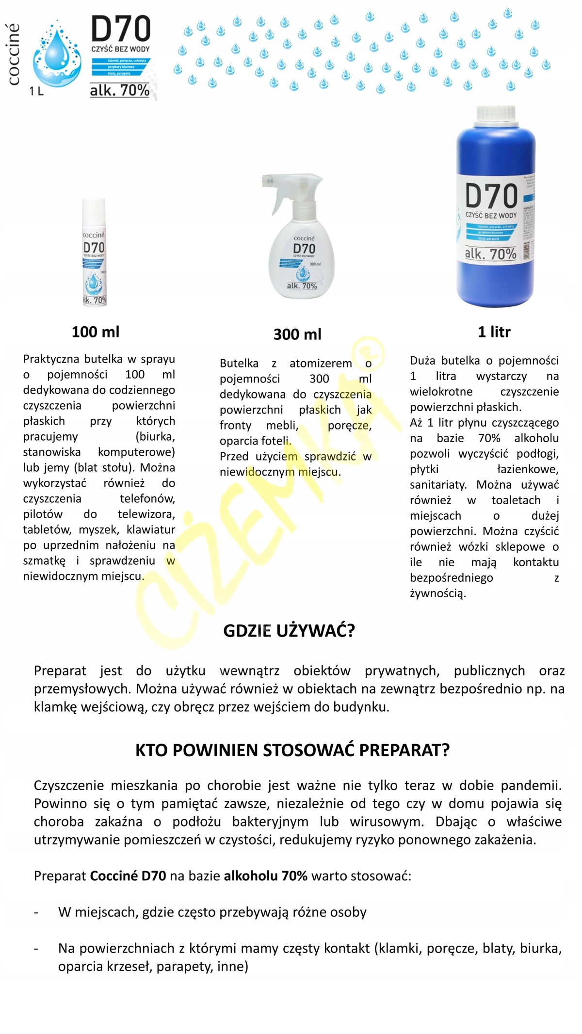 мы предлагаем здесь h1> coccine D70, 70%, 300 мл, 1 ПК, на основе алкоголя, h1> , произведенного в Польше h1>