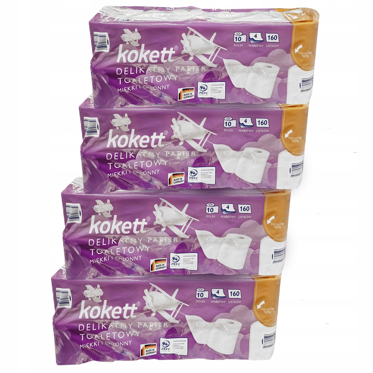 Оригинальная немецкая туалетная бумага Kokett® является гарантией отличного качества. Сплошная производительность чистой целлюлозной бумаги, обесцвеченная без использования хлора, делает ее чрезвычайно деликатной и безопасной бумагой.