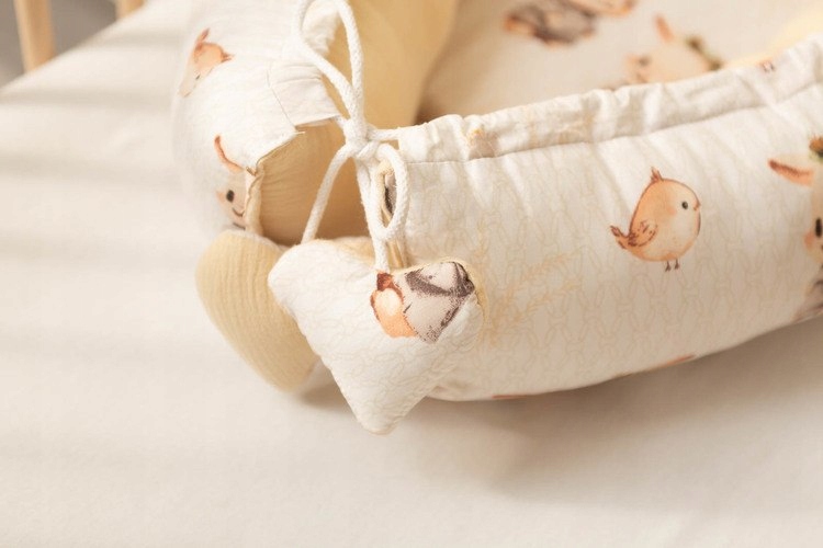 Кокон предназначен для детей с рождения до 6 месяцев. Кокон окутывает ребенка и ограничивает его пространство, благодаря тому, что ребенок чувствует себя в безопасности, как в животе его матери. Его можно использовать во многих отношениях: в кровати родителей, на диване, в кроватке и во время поездок. Высокие стены предотвращают ребенка. Продукт изготовлен из муслина и хлопка и наполнен 100% силиконовыми шариками. ВНИМАНИЕ! Кокон не используется для перевозки или подъема ребенка! Максимальная температура промывки составляет 30o c. Промывка в мягком моющем средстве или в середине цветов для цветов