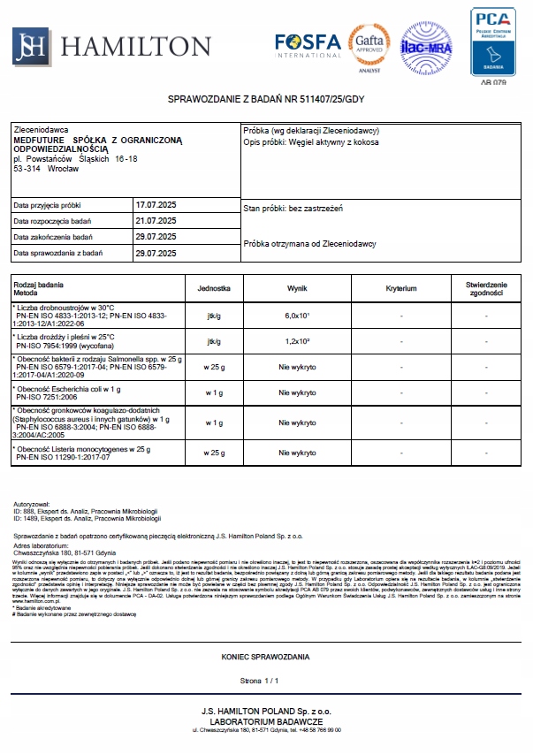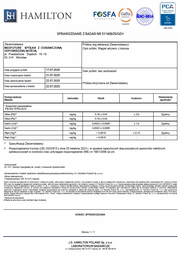 Содержание в 1 капсуле: активированный углерод из кокоса 260 мг