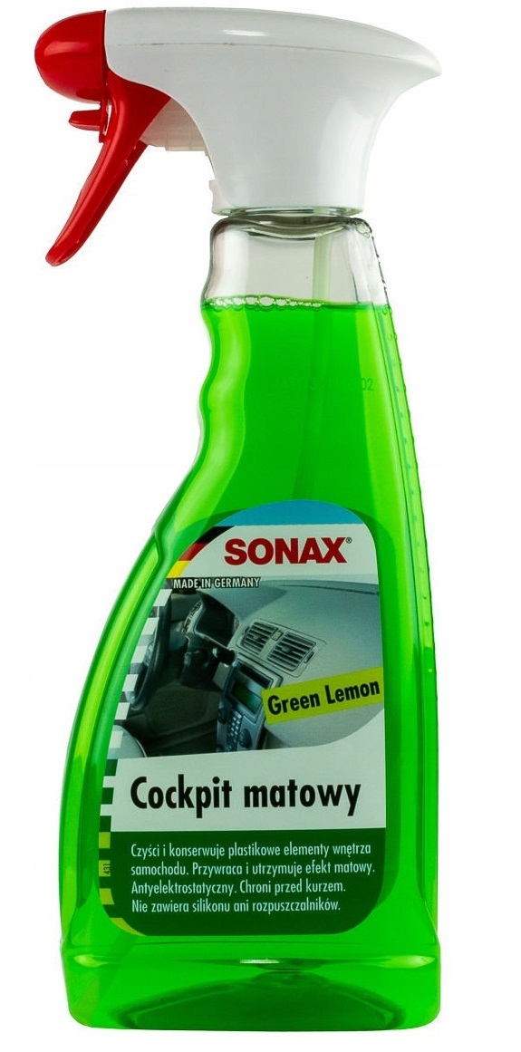 Очищает и консервирует все пластиковые элементы. Обладает антистатическим эффектом, что предотвращает повторное скопление пыли. Оживляет цвет и придает кабине первоначальный матовый вид. Удобная упаковка-распылитель облегчает нанесение препарата. Оставляет свежий аромат. Не содержит силикона.