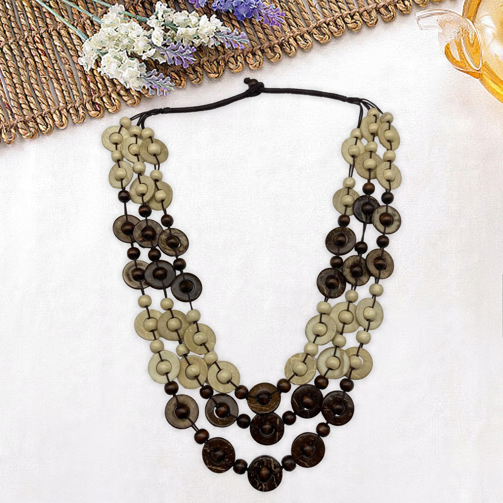 Ожерелье в стиле бохо. Колье этнического стиля. Ожерелье из деревянных бусин. Коричневый белый