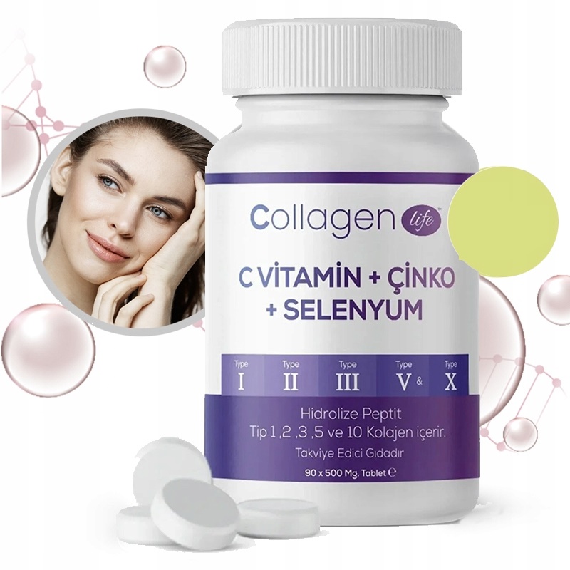 Kolagen Collagen Life 5 rodzajów Kolagenu Witamina C Cynk Selen 90 Tabletek