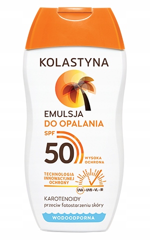 KOLASTYNA Эмульсия для загара SPF 50 обеспечивает эффективную и фотостабильную защиту от 4 основных типов излучения (UVA, UVB, видимый свет, инфракрасное излучение). радиация), которые способствуют солнечным ожогам и образованию свободных радикалов, ответственных за преждевременное старение и фотостарение кожи.