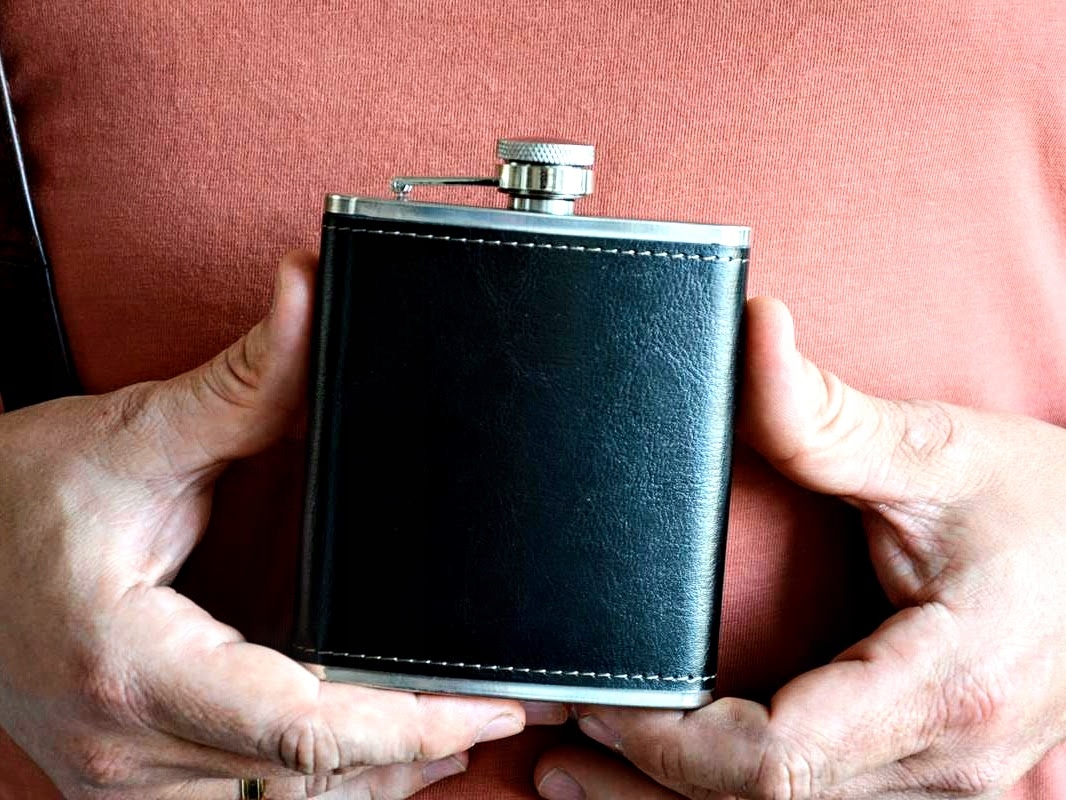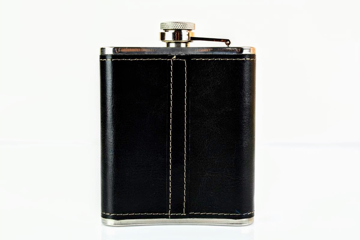 ✅ Фляга емкостью 7 унций-210 мл, изготовлена из нержавеющей стали, отделана черной кожей.