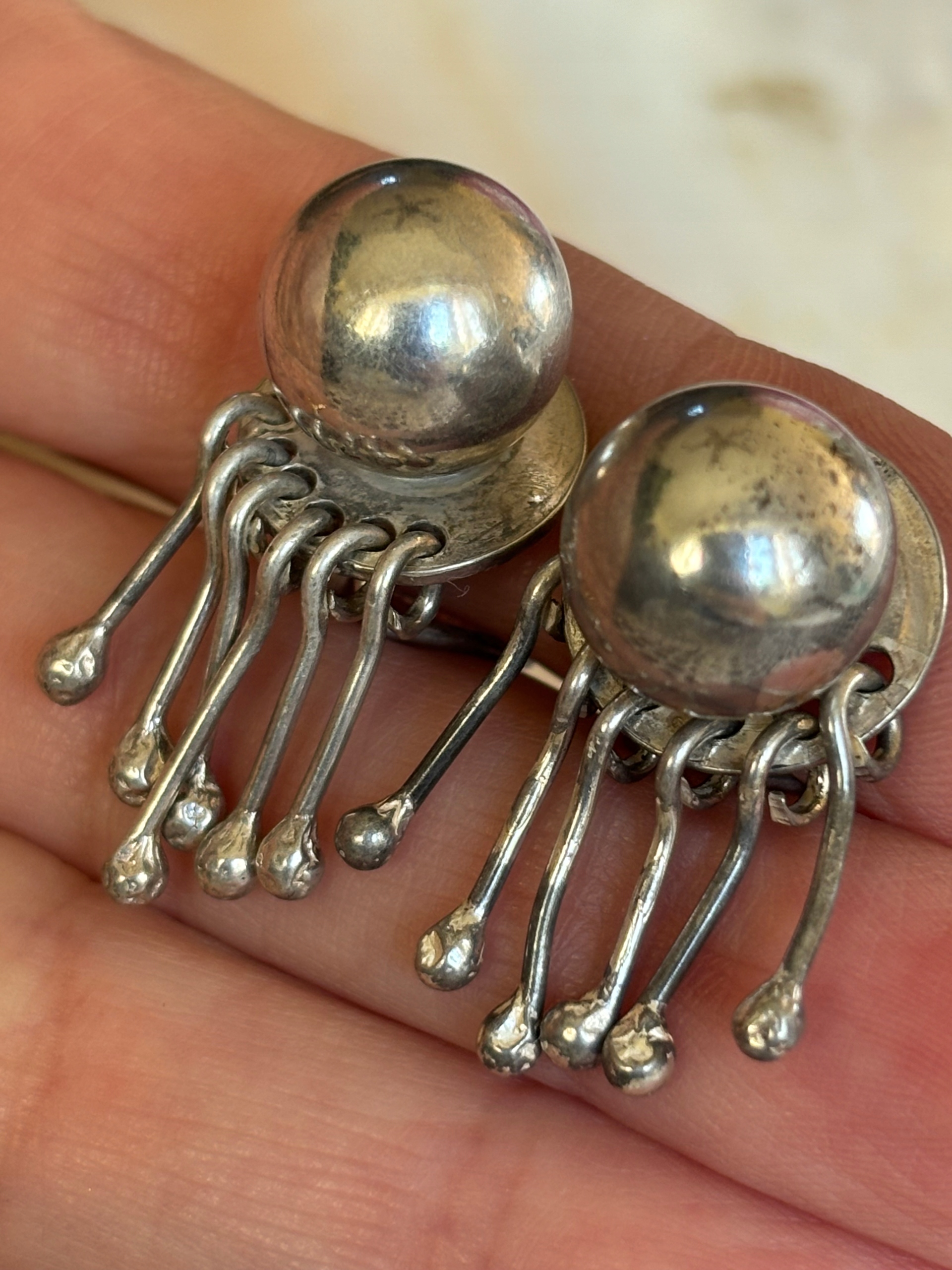 Kolczyki klipsy stare srebrne ruchome kulki 800