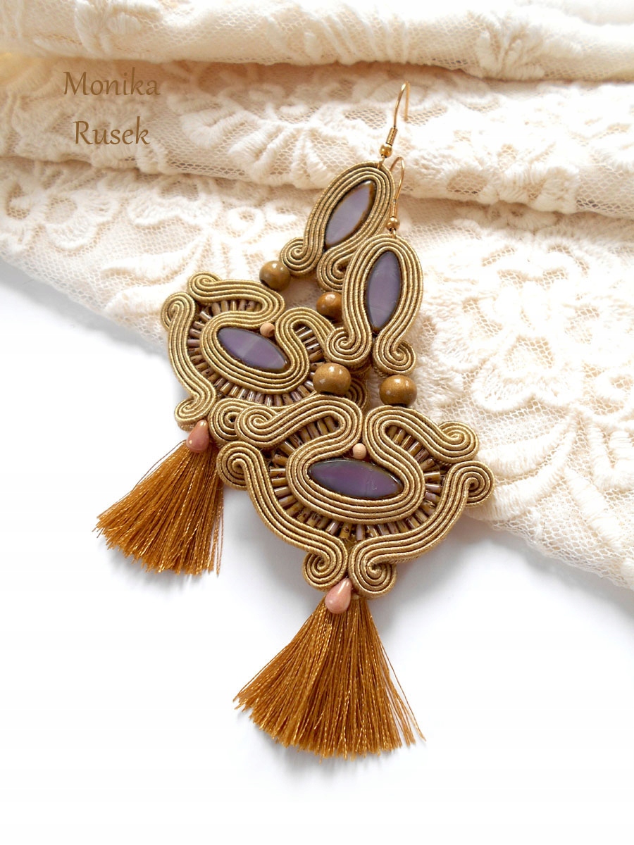 KOLCZYKI SUTASZ BOHO chwost lawenda hand made 100%