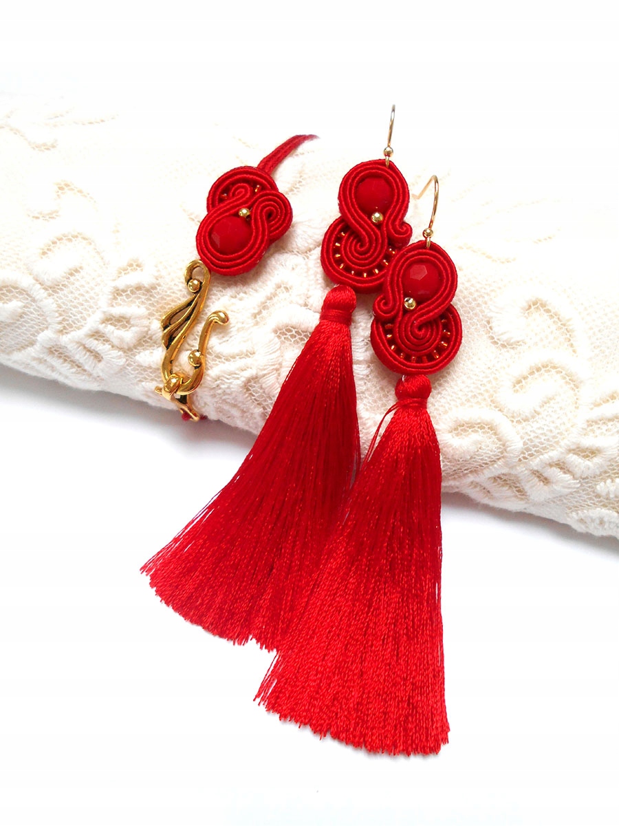 KOLCZYKI SUTASZ czerwone z chwostem 100% hand made