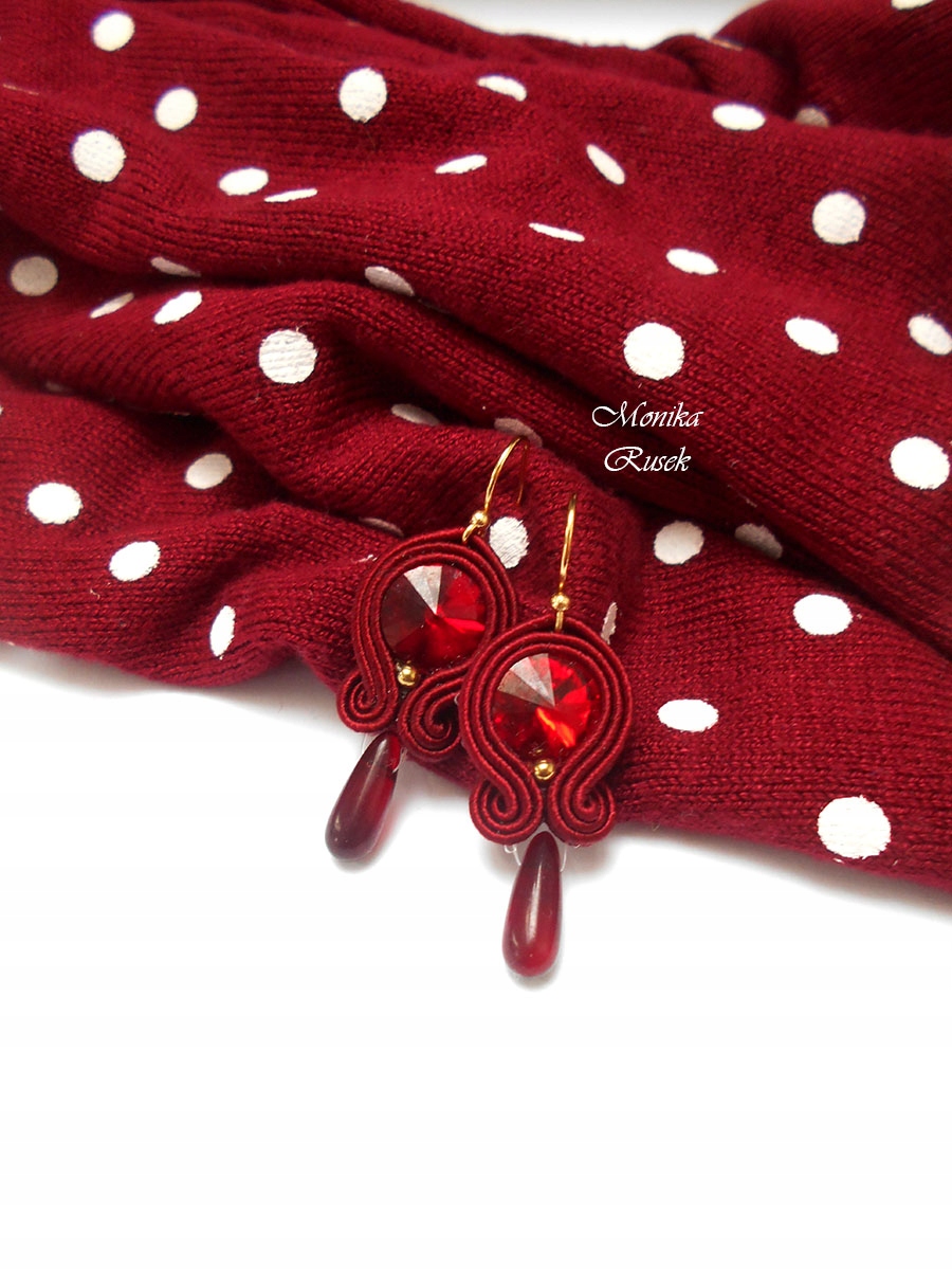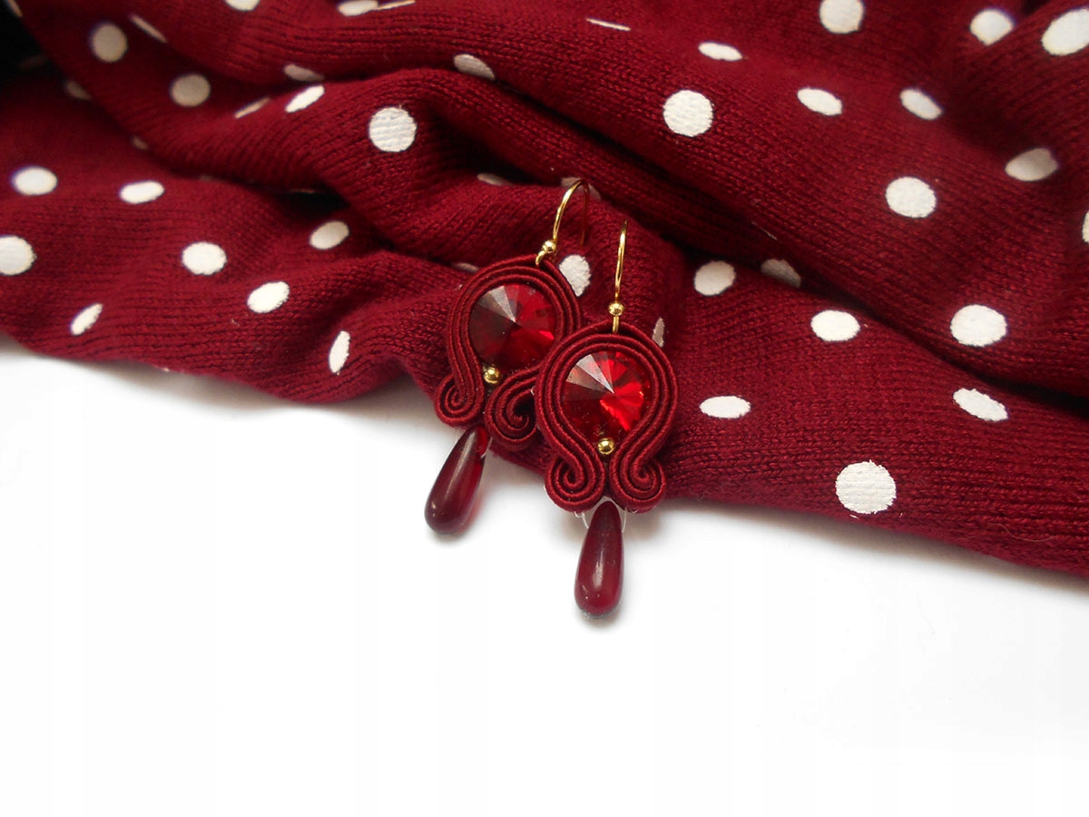 KOLCZYKI SUTASZ drobne małe bordowe 100% HAND MADE