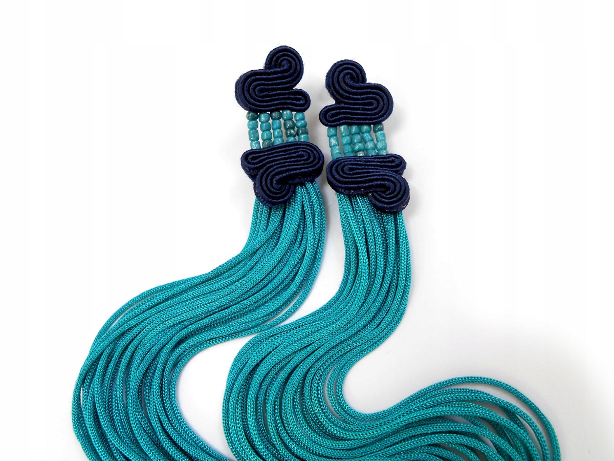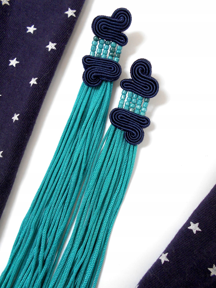 KOLCZYKI SUTASZ długie granatowe morskie niebieski