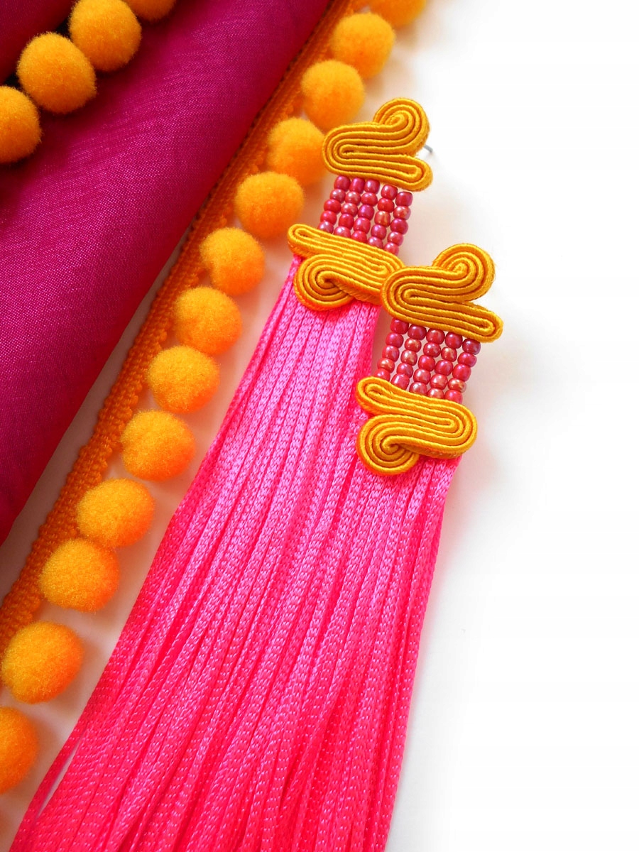 KOLCZYKI SUTASZ neonowy róż żółte różowe frędzle
