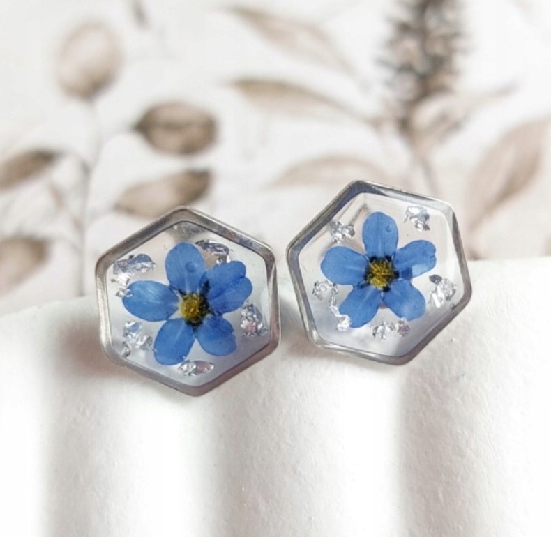 Kolczyki sztyfty z niezapominajką, stal chirurgiczna, prezent dla koleżanki