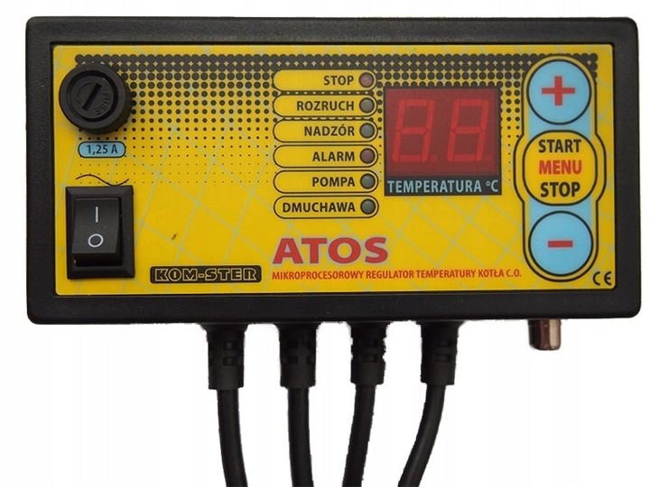 atos ‘Регулятор b> предназначен для управления вентилятором вентилятора в центральных нагревающих котлах. и включить насос циркуляции. Оснащенный дополнительным выходным мощностью, включающим вклад в помещение термостата, также позволяет поддерживать заданную температуру в комнате. Контроллер характеризуется простой работой и надежной работой