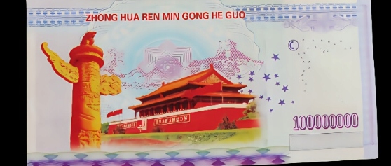 Предметом аукциона является уникальная коллекционная банкнота номинальной стоимостью 100 000 000 юаней (сто миллионов юаней). Это памятная банкнота, а не официальный тендер, выпущенная в целях коллекционирования или как символ процветания.