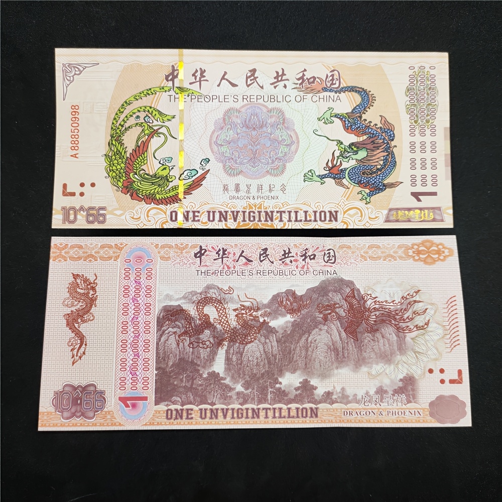 Коллекционная банкнота с китайским драконом и фениксом UNVIGINTILLION UV UNC Smart Blik