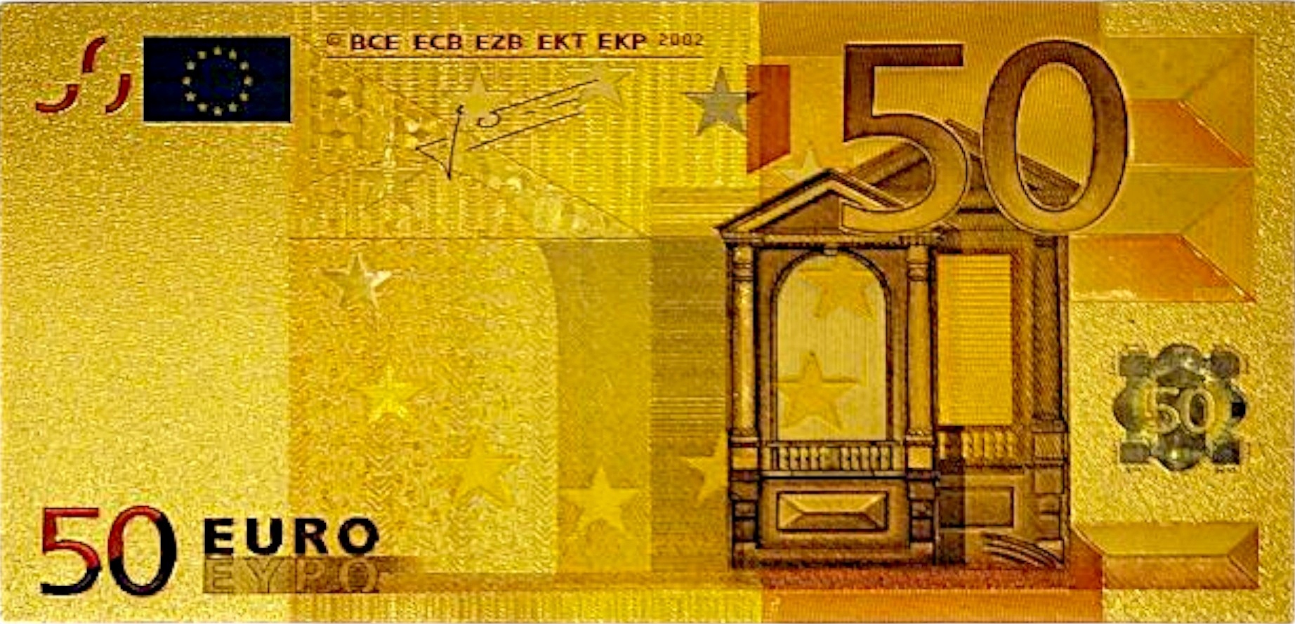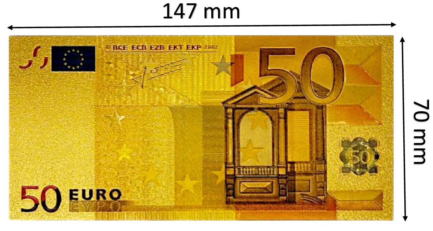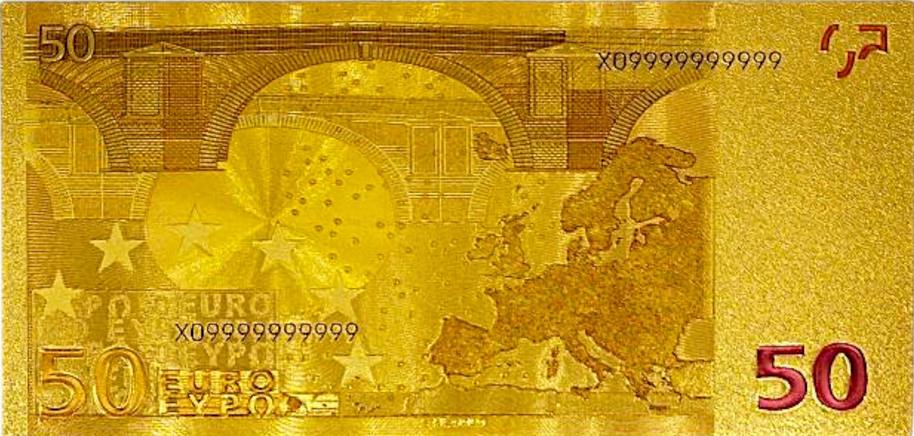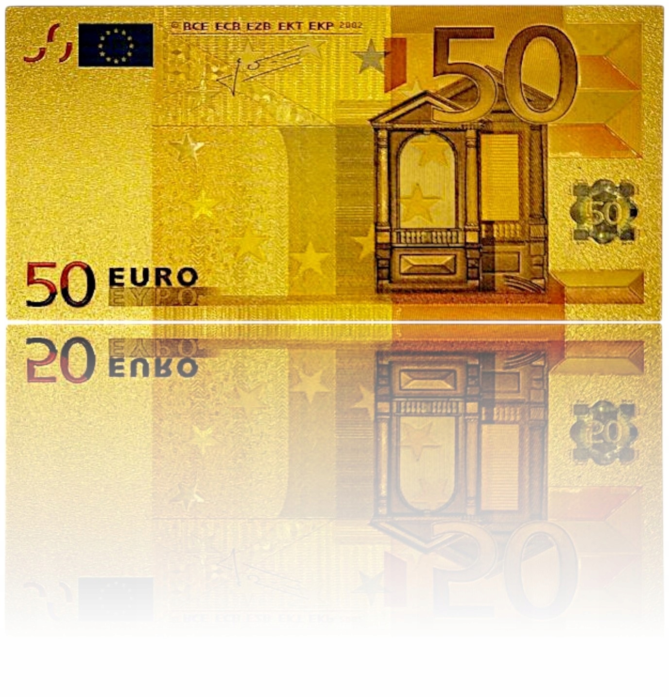 Коллекционная банкнота номиналом 50 евро, позолоченная копия из ПВХ. Украшение для вашей коллекции.