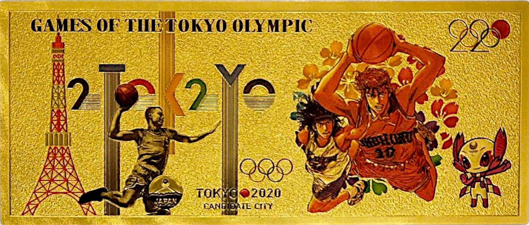 Коллекционная банкнота из ПВХ, посвященная Олимпийским играм 2020 года в Токио, баскетболу