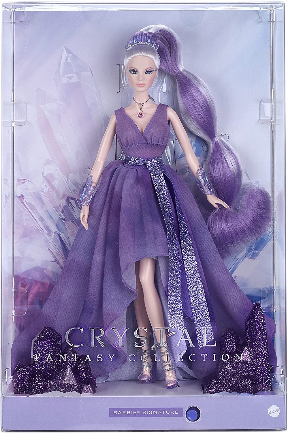 Первая кукла Барби в этой коллекции излучает непревзойденную красоту и отражает силу аметиста.