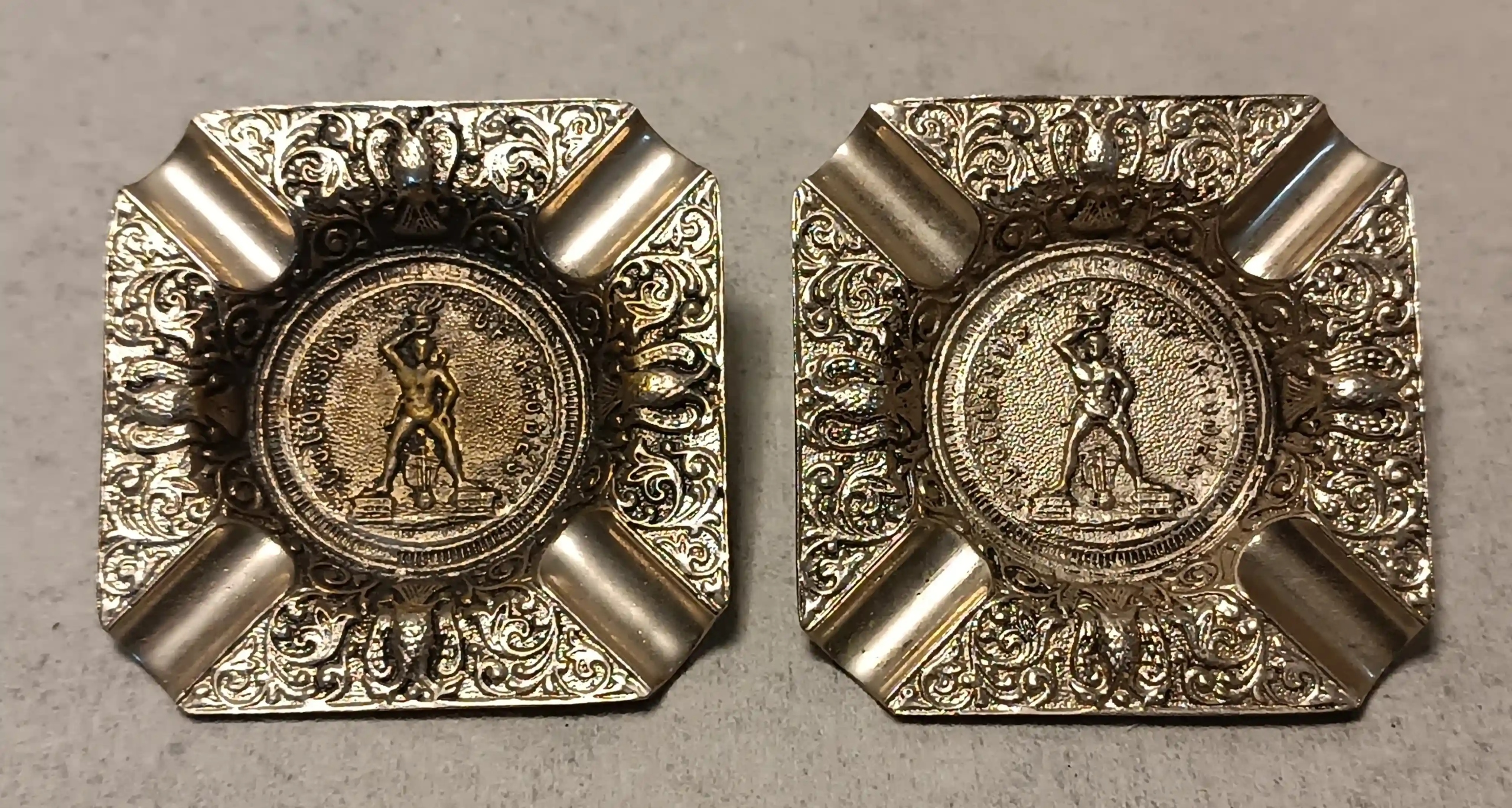Небольшая квадратная сувенирная пепельница, вероятно, металлическая