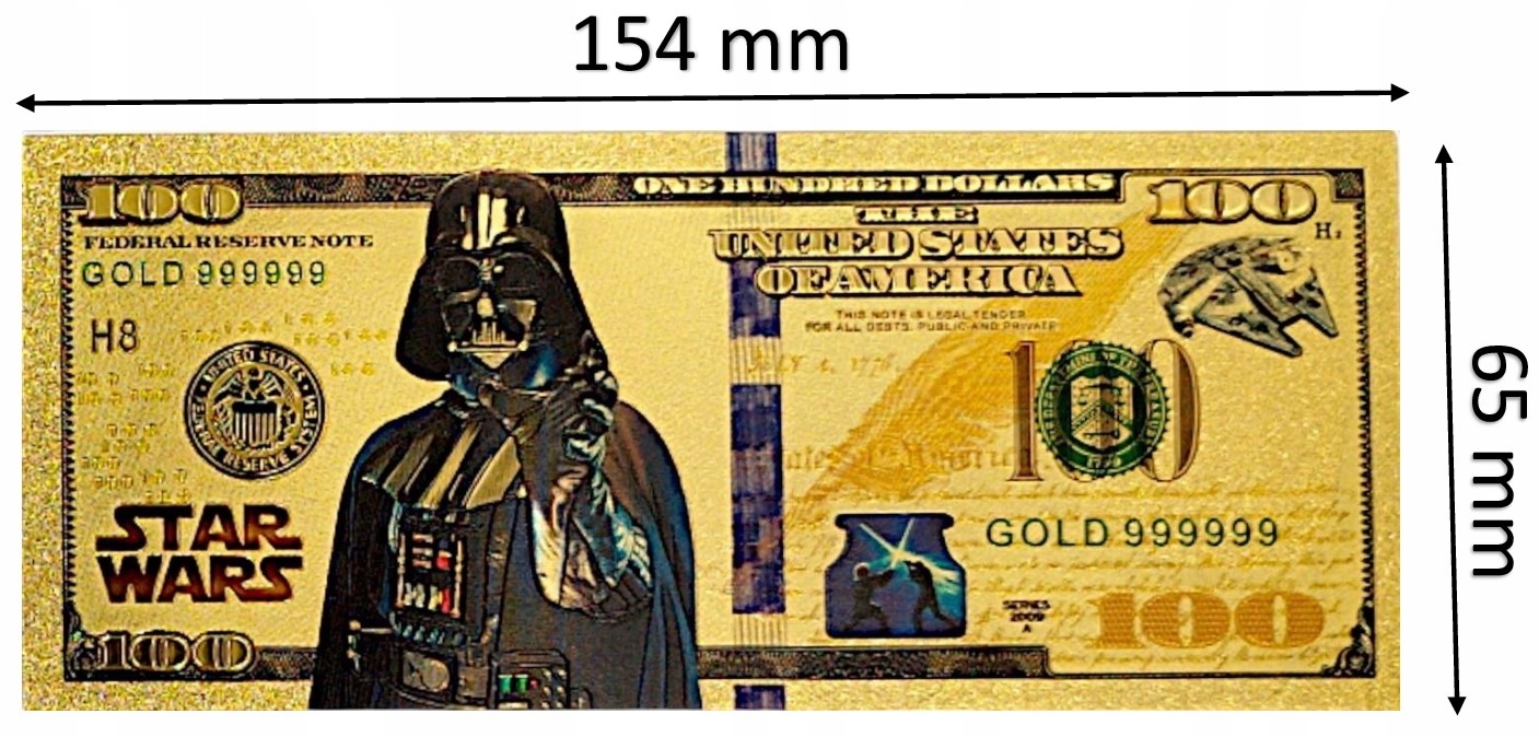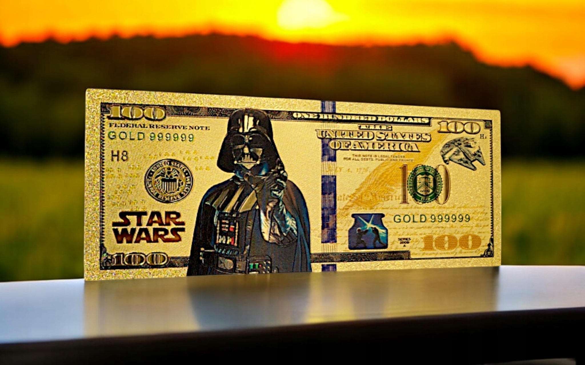 Колекційна позолочена банкнота LORD VADER STAR WARS номіналом 100 доларів у ПОДАРУНОК