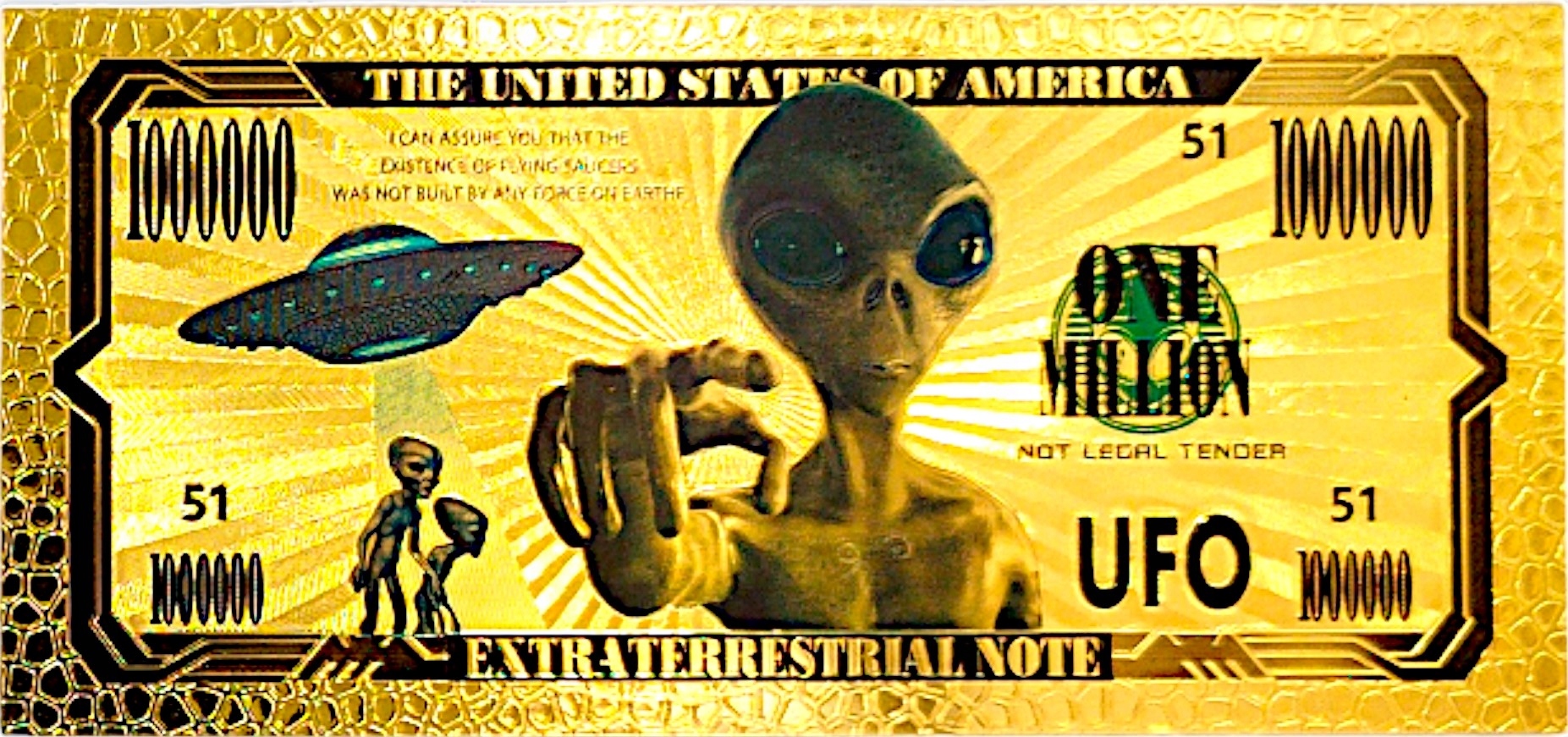 ЗОНА 51 ПОЗОЛОЧЕННЫХ БАНКНОТ НЛО