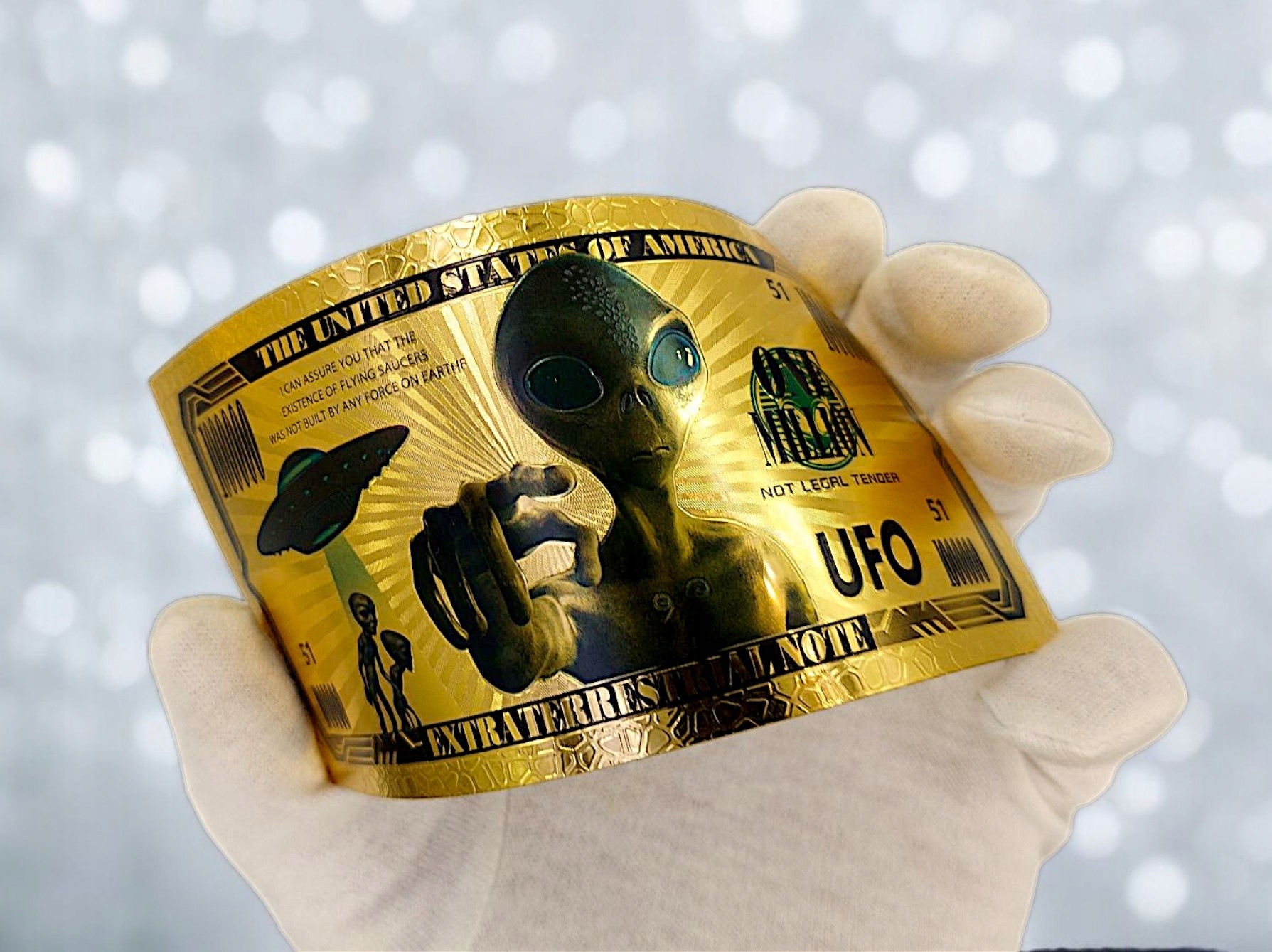 Красивая позолоченная банкнота НЛО AREA 51.
