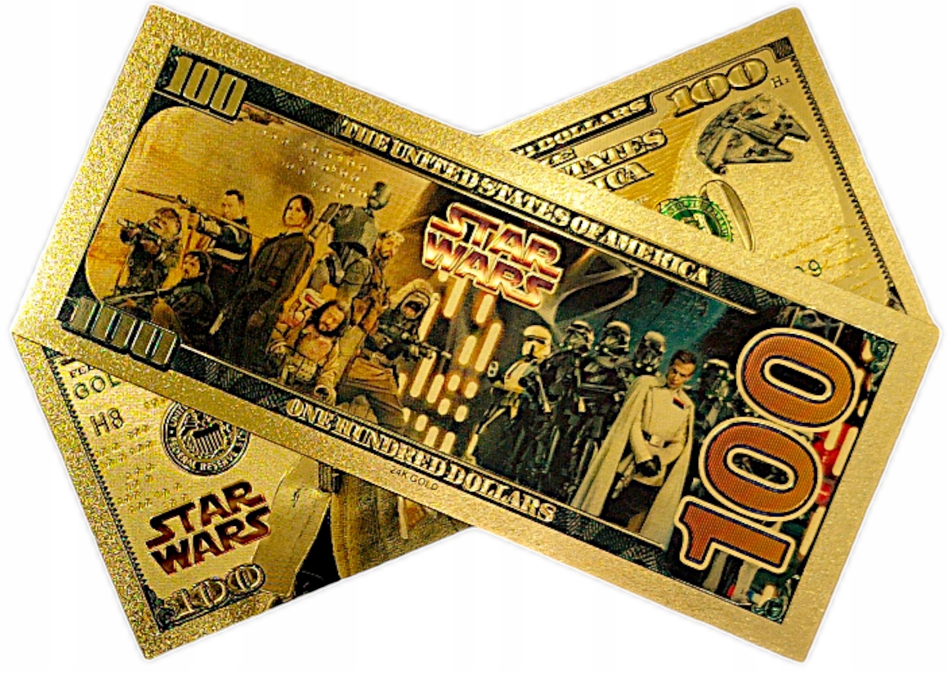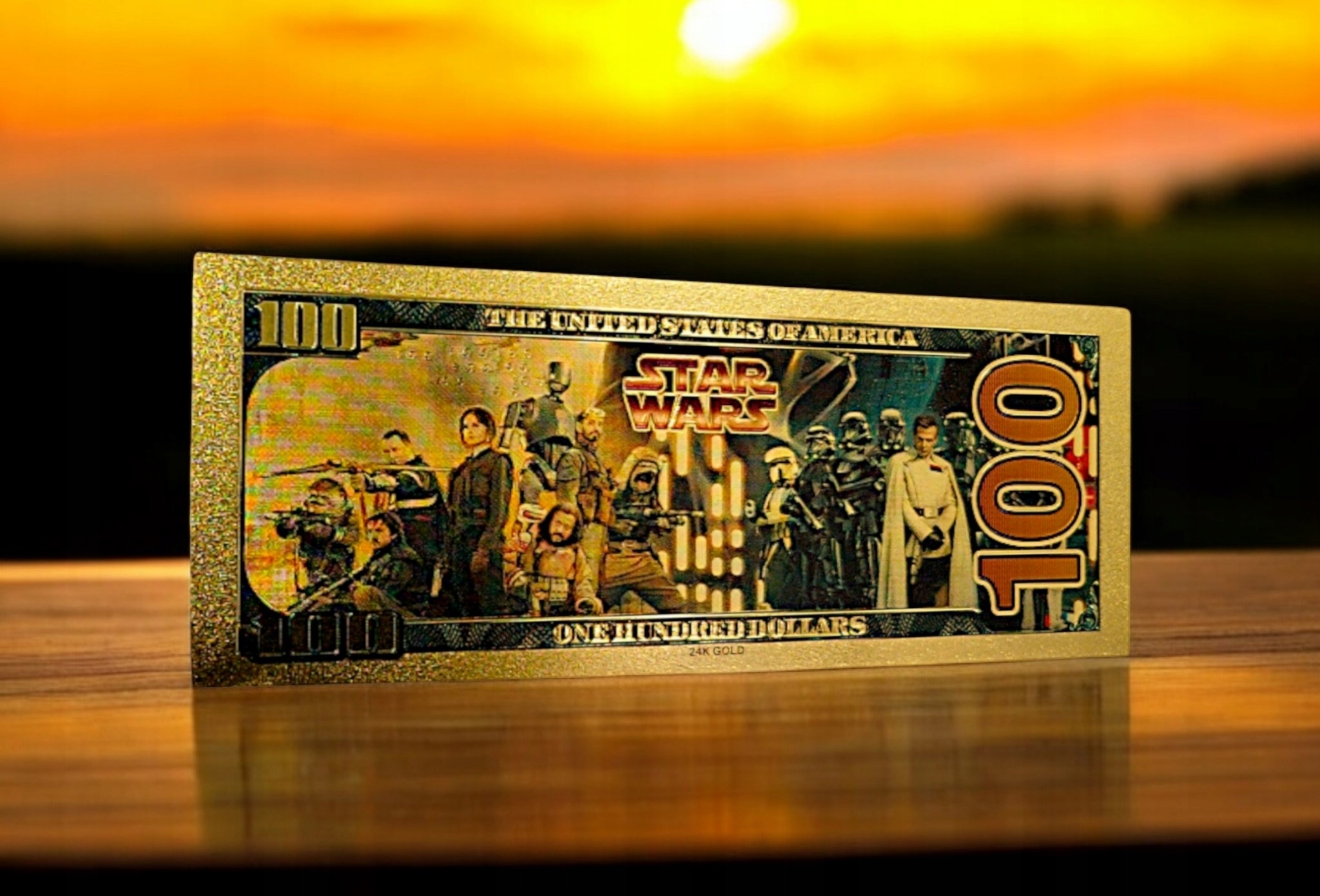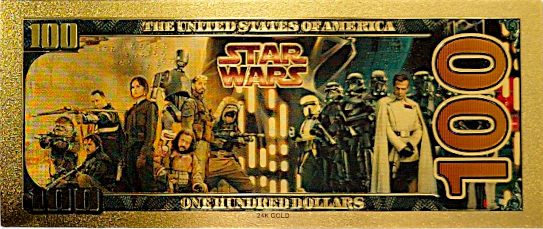 Банкнота достоинством 100 долларов с мотивом из серии «ЗВЕЗДНЫЕ ВОЙНЫ» относится к так называемому «записки знаменитостей», то есть долларовые купюры с портретами кинозвезд или вымышленных персонажей, например, из сказок.