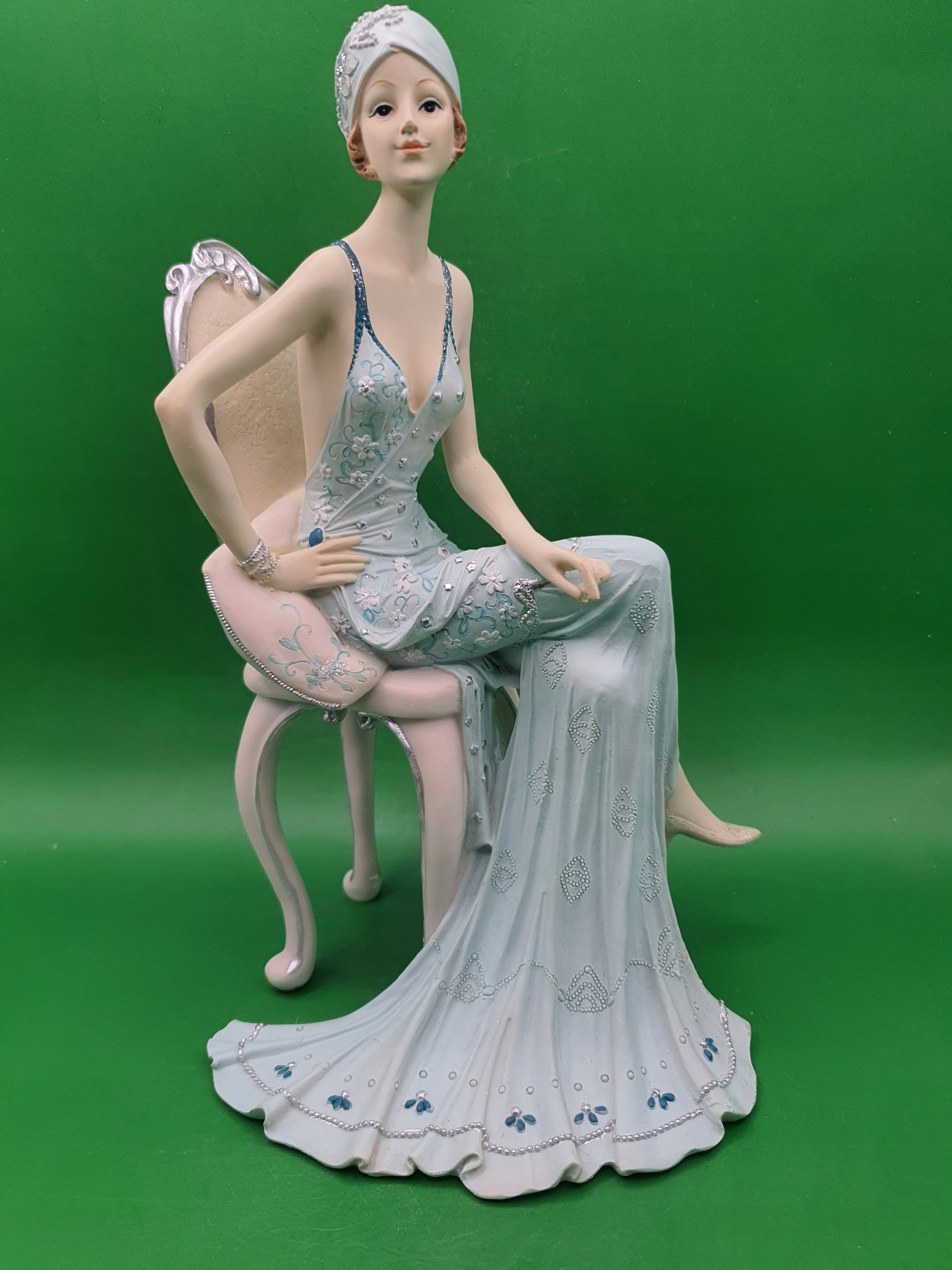 Статуэтка «Сидящие бродвейские красавицы» в синем платье.