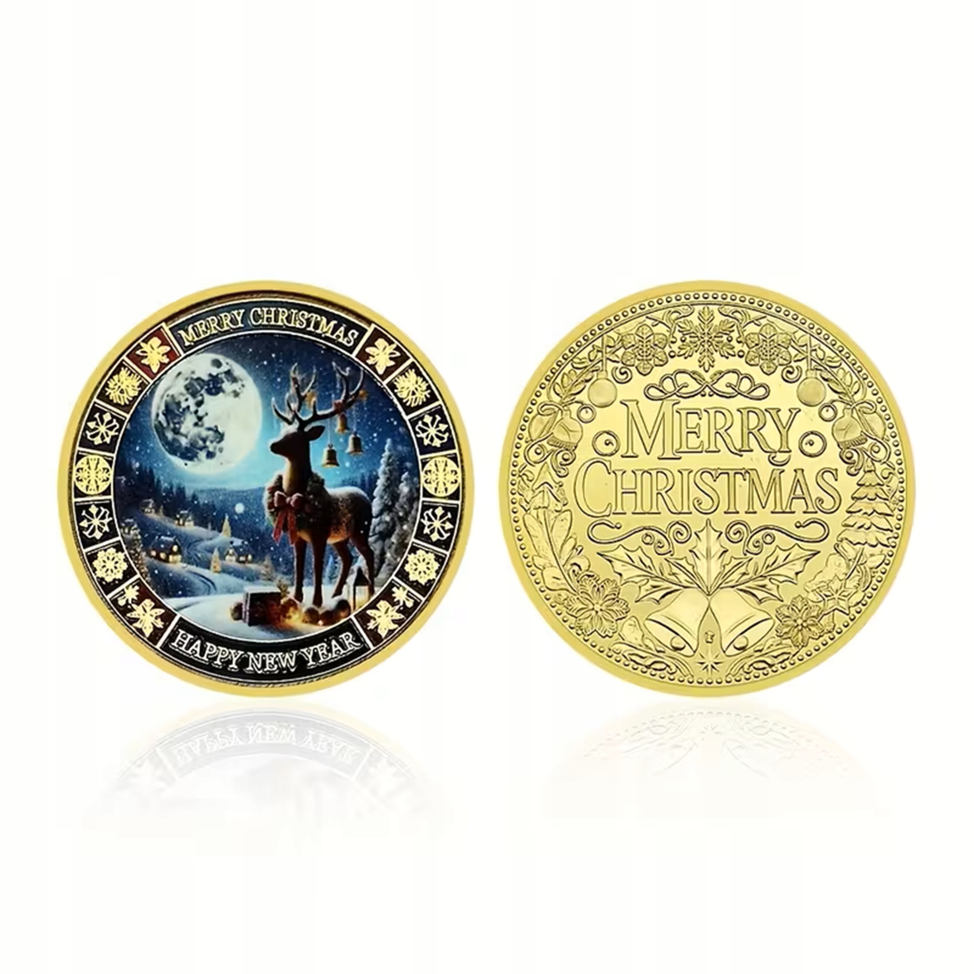 Рождественские коллекционные монеты ДИКОМ в красном футляре, идеальны в подарок.