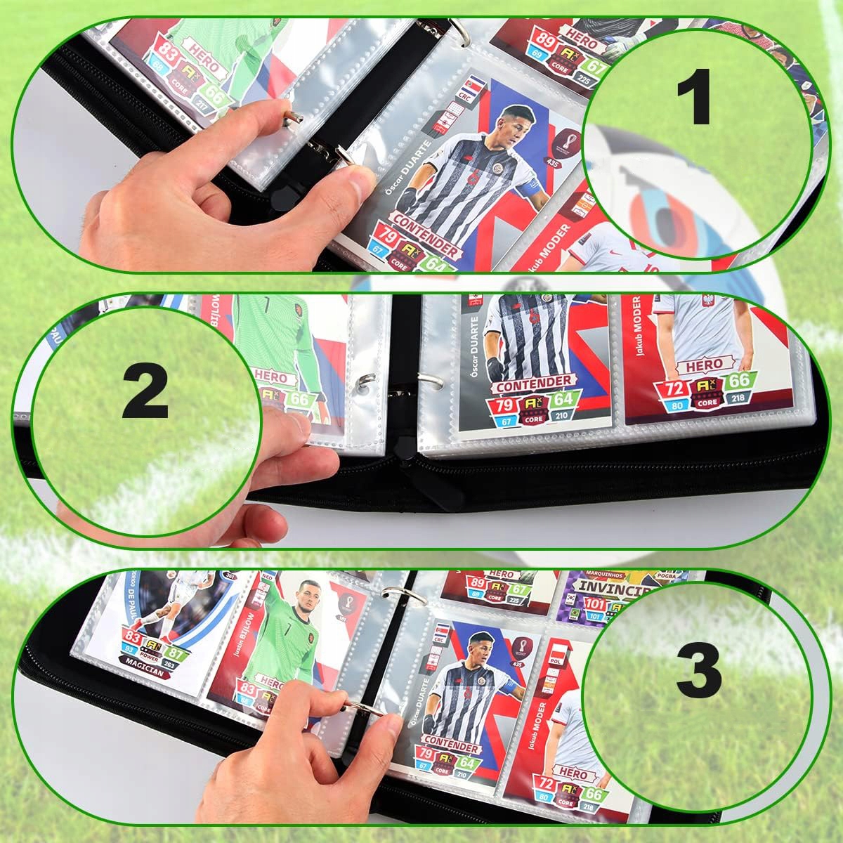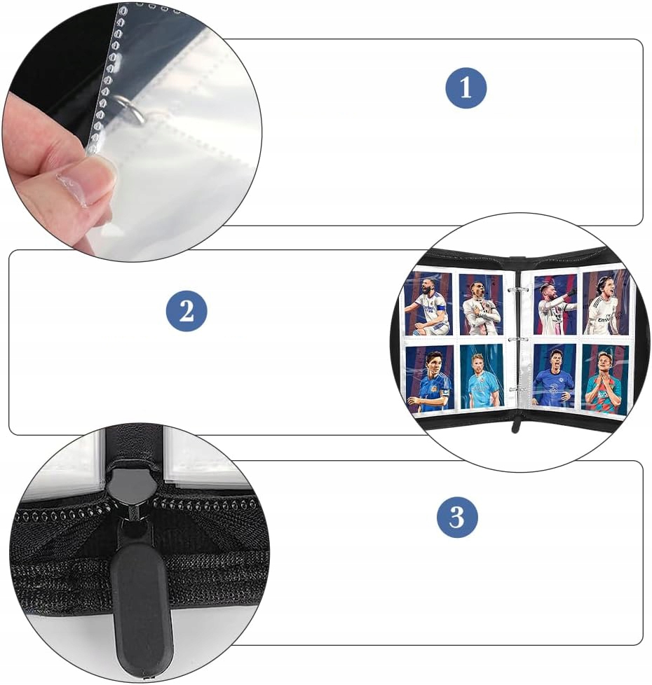 👍👍👍 【Дизайн большой емкости】Книга двусторонняя, имеет 8 отделений на каждой странице, всего 60 страниц, и вмещает до 480 карточек. Закрытая молния предотвращает выпадение внутренних страниц или карточек. Держите свои карты в порядке и защищайте их от пыли и воды.
