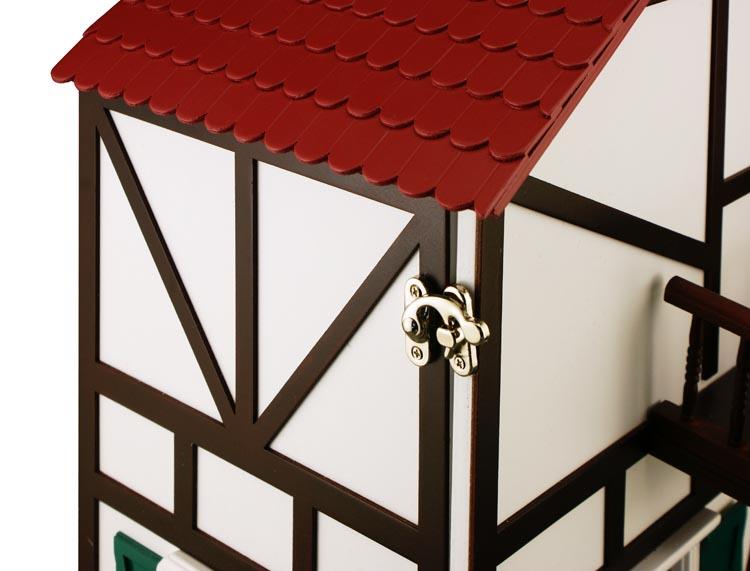 Крышу и фасад можно снять для лучшего доступа. Благодаря устойчивому креплению домик можно повесить на стену, как картину, поскольку его глубина составляет всего около 20 см. В зависимости от ваших предпочтений, его также можно использовать в качестве украшения.