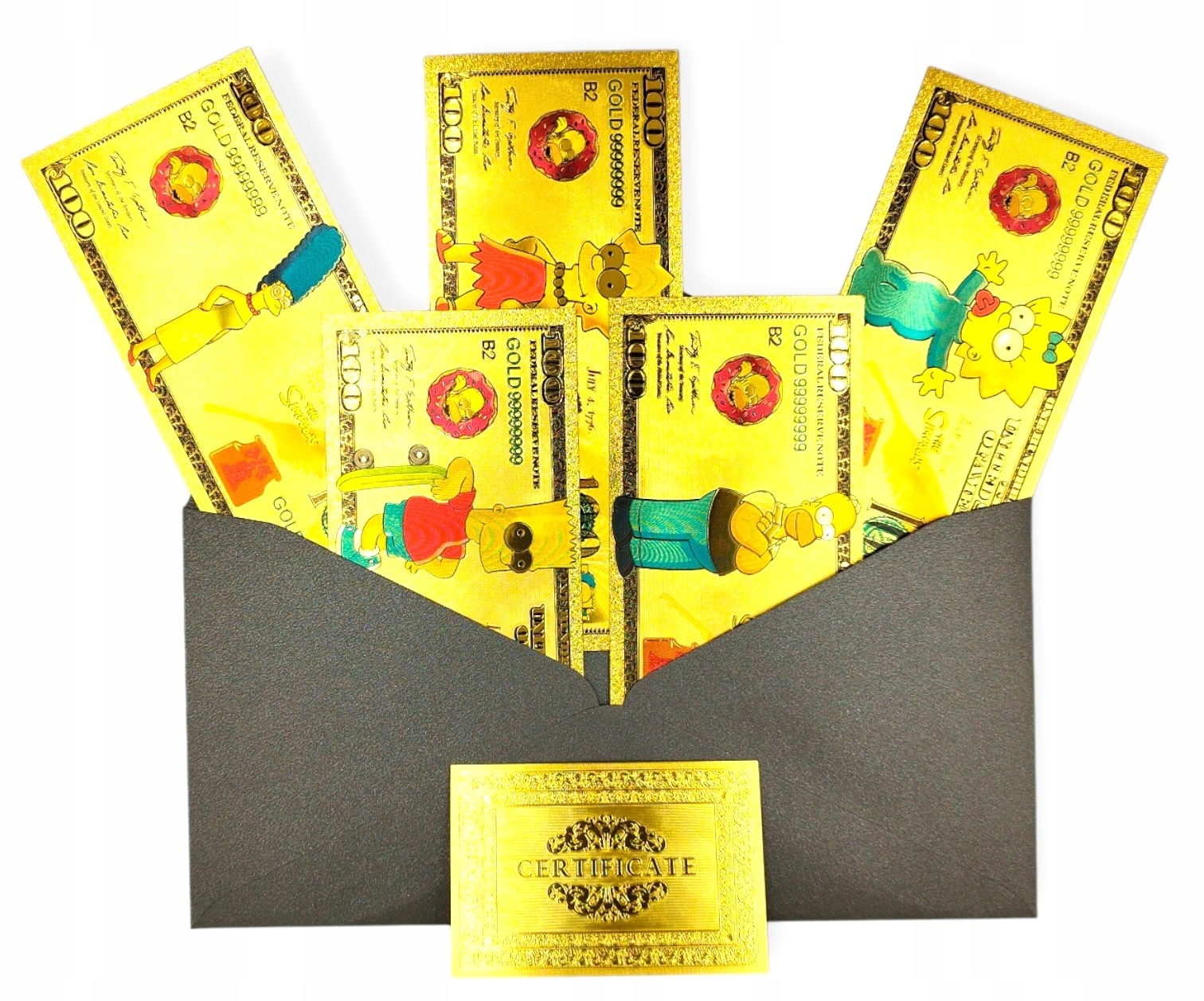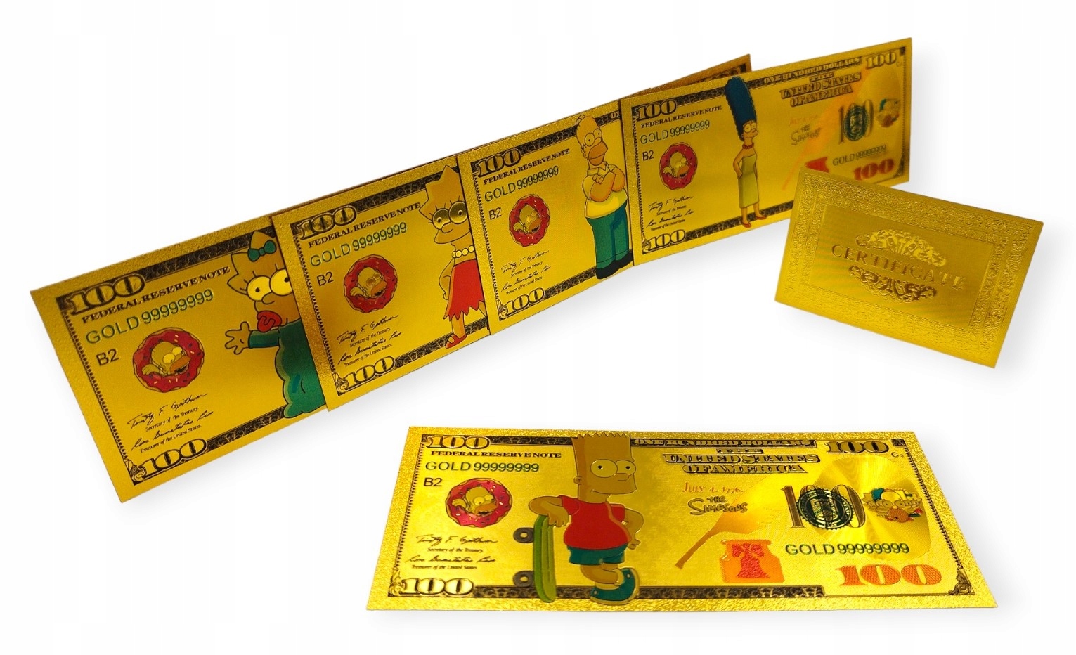 Привет, фанат «Симпсонов»! Если вы поклонник этой культовой анимации, этот аукцион создан специально для вас! Предлагаю уникальный набор позолоченных банкнот, на которых изображены замечательные персонажи любимого сериала!