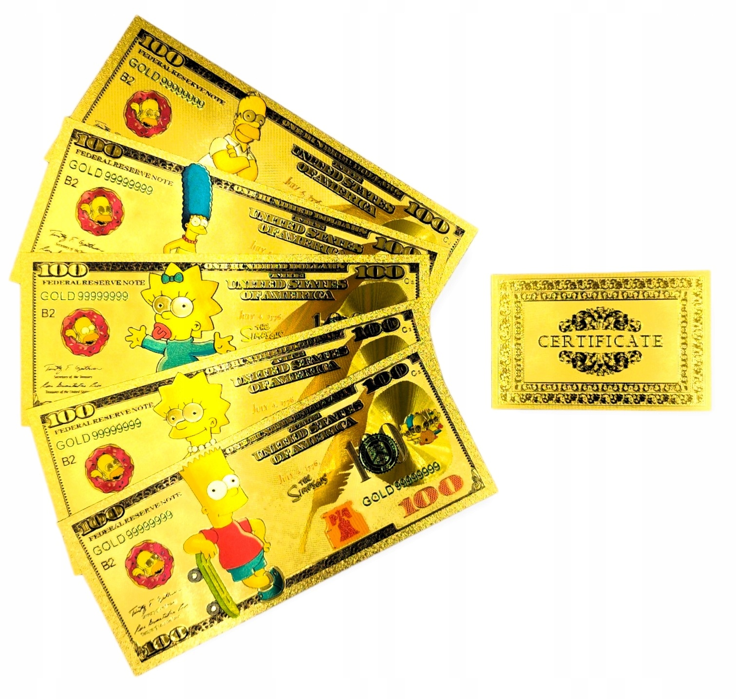 Эти банкноты — не только украшение вашей коллекции, но и отличный способ показать свою любовь к этой культовой серии. Не упустите возможность приобрести что-то особенное, связанное с этими иконами поп-культуры. Эти позолоченные банкноты, отличающиеся безупречным мастерством и потрясающим дизайном, станут прекрасным подарком себе или поклоннику «Симпсонов» в вашей жизни.