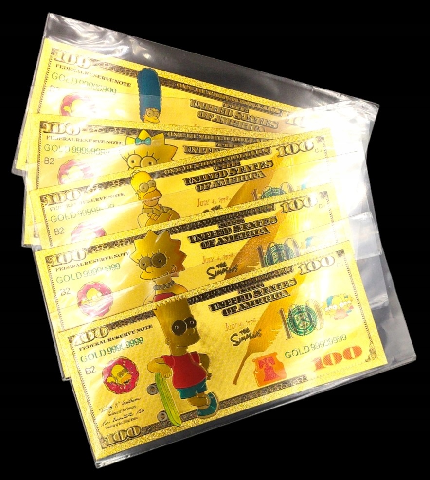 Привет, фанат «Симпсонов»! Если вы поклонник этой культовой анимации, этот аукцион создан специально для вас! Предлагаю уникальный набор позолоченных банкнот, на которых изображены замечательные персонажи любимого сериала!