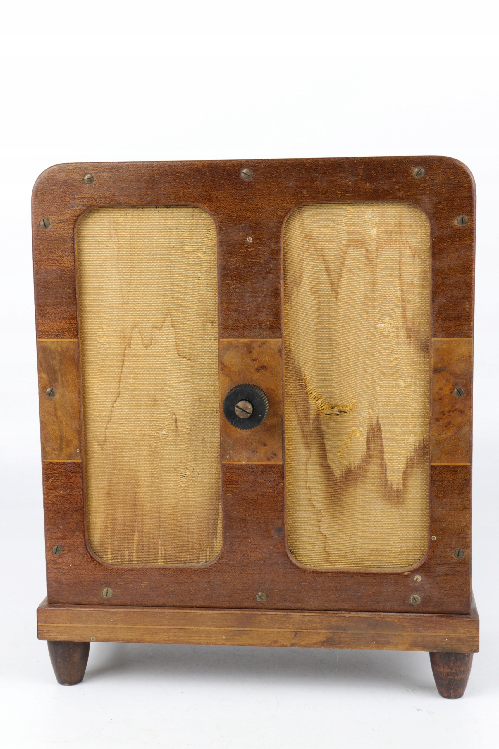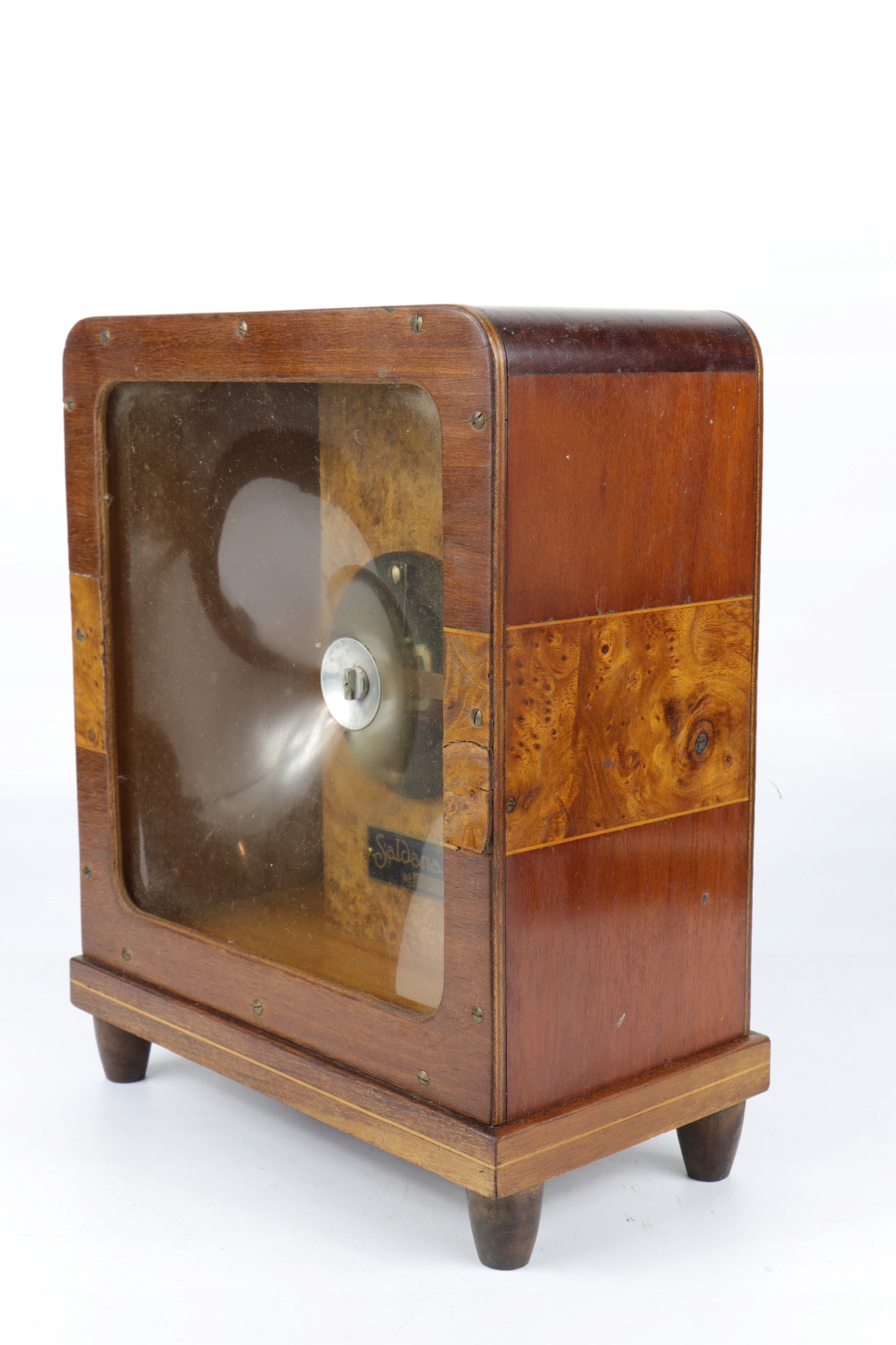 Интересный редкий коллекционный радиодинамик «Салдана». Радиоприемник из дерева, отделанный шпоном ореха. Пластиковая мембрана, внутренняя часть задней части защищена материалом. На заводской табличке указан артикульный номер 2151. Каталожный номер R. 9801 Diffuseur model BB.