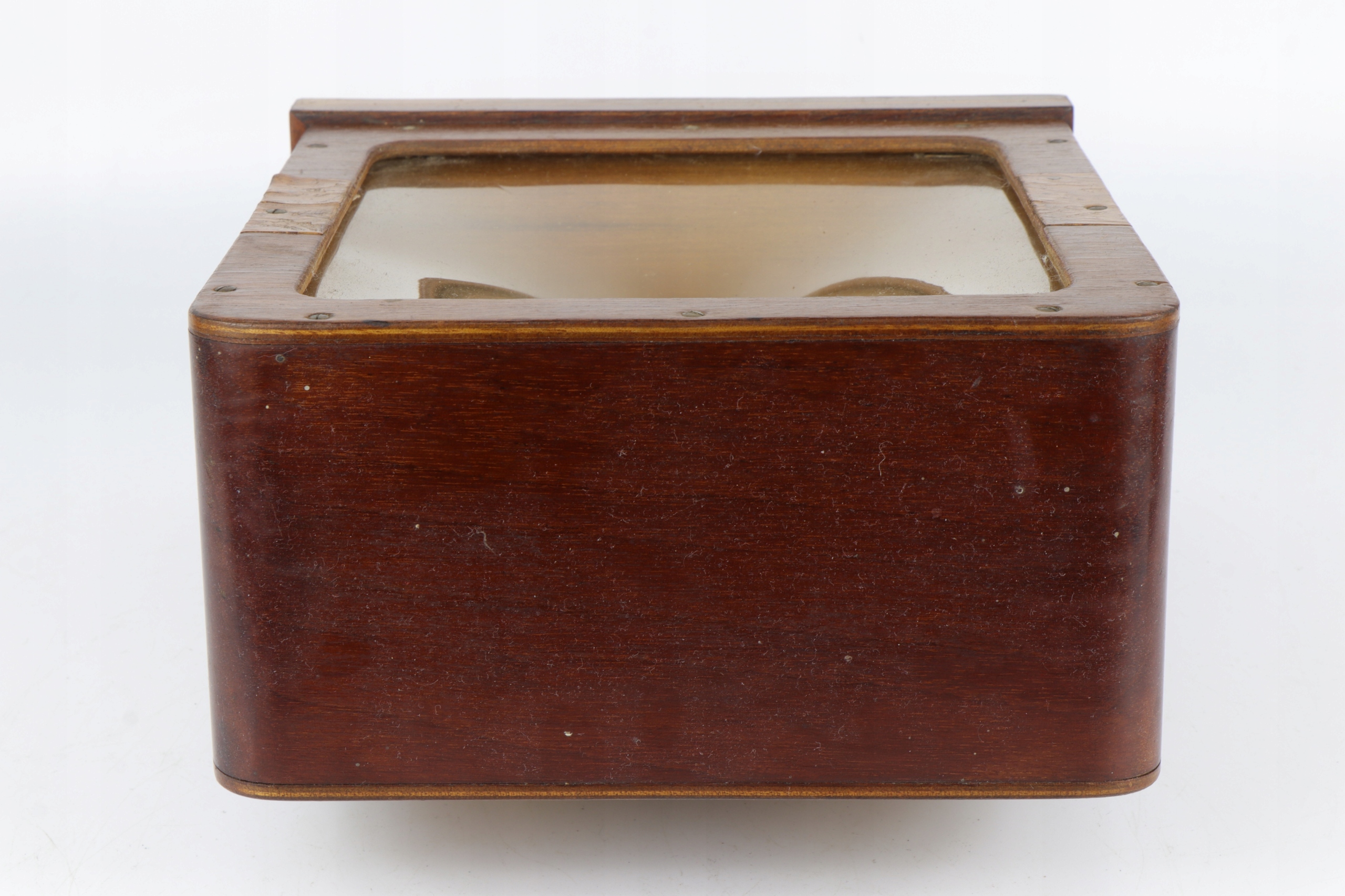 Как показано на фотографиях, внутренний защитный материал порван сзади. Деревянная шкатулка сохранилась хорошо, шелушение шпона по краям минимальное. Пластиковая мембрана без повреждений. Громкоговоритель для освежения и мелкого обслуживания.