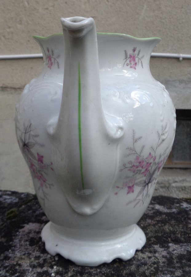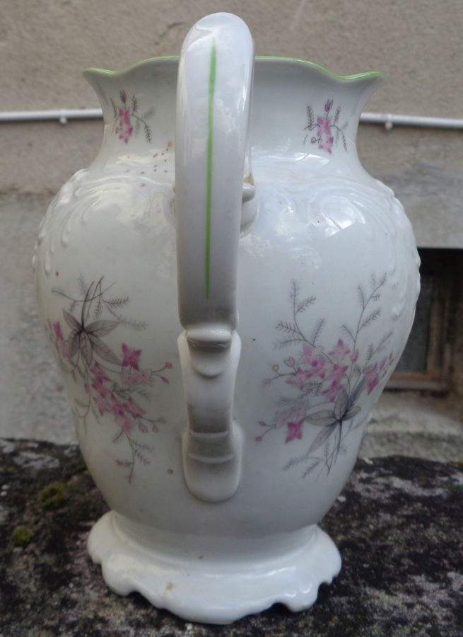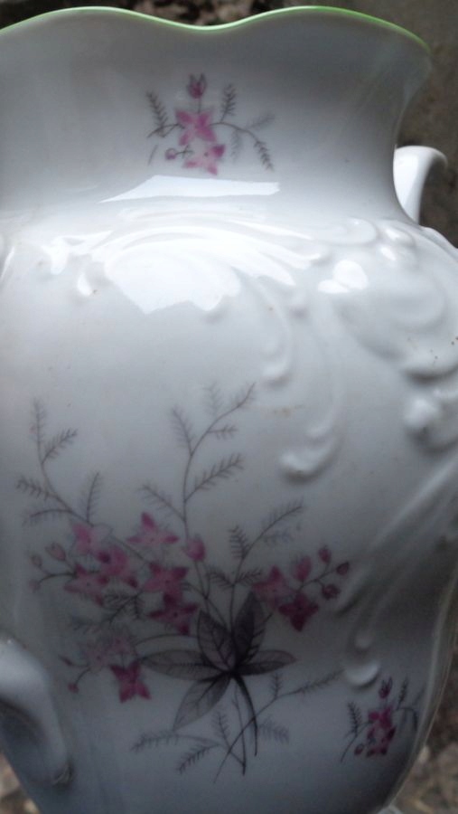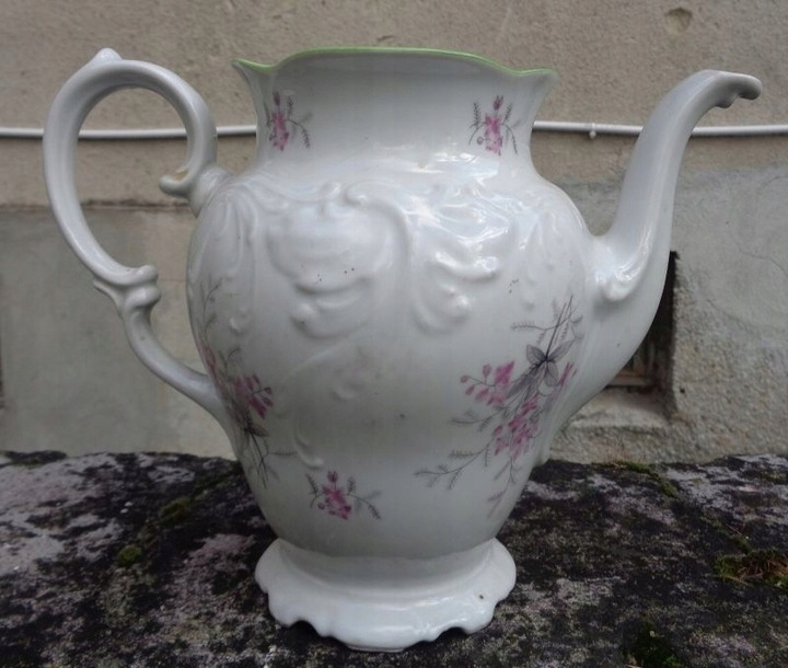 Интересный, богато декорированный чайник в стиле неорококо 1970-х годов, изготовленный на Валбжихском фарфоровом заводе. Экспонат имеет красивое, богато украшенное основание. Чаша кувшина украшена красивыми букетами цветов разного размера. Верх украшен интересными, декоративными, нежными цветами. Ниже – красивый орнамент из фарфора в стиле неорококо. Кувшин имеет красиво оформленную профилированную ручку, украшенную вручную зеленью. Кувшин имеет интересную и аккуратно декорированную воронку. Край кувшина неровный, вручную украшен зеленью. Очень качественный фарфор без повреждений. Экспонат подписан, подпись видна на фотографиях. У экспоната отсутствует обложка. Всем рекомендую.