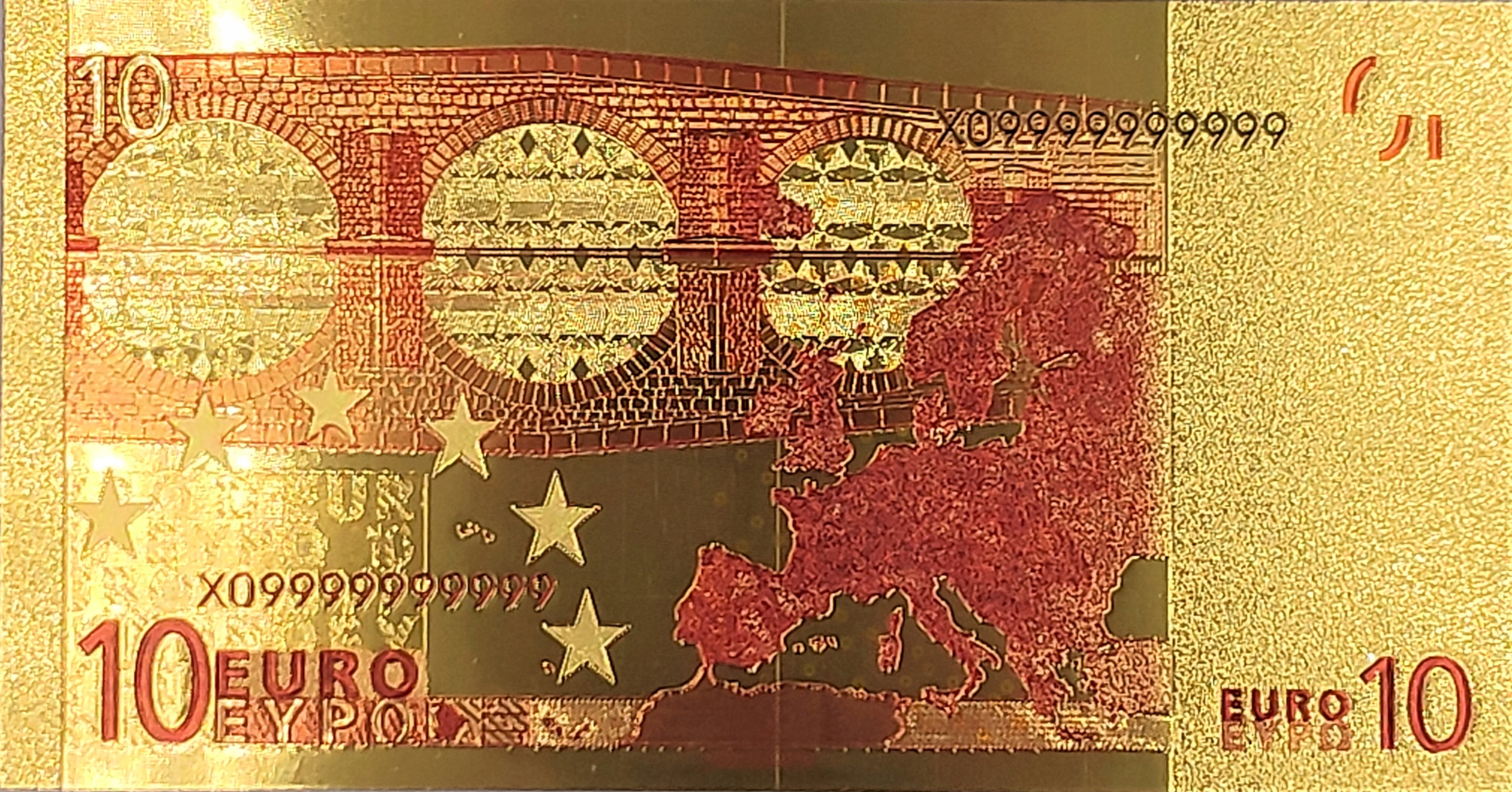 ПОЗОЛОЧЕННАЯ БАНКНОТА 10 ЕВРО