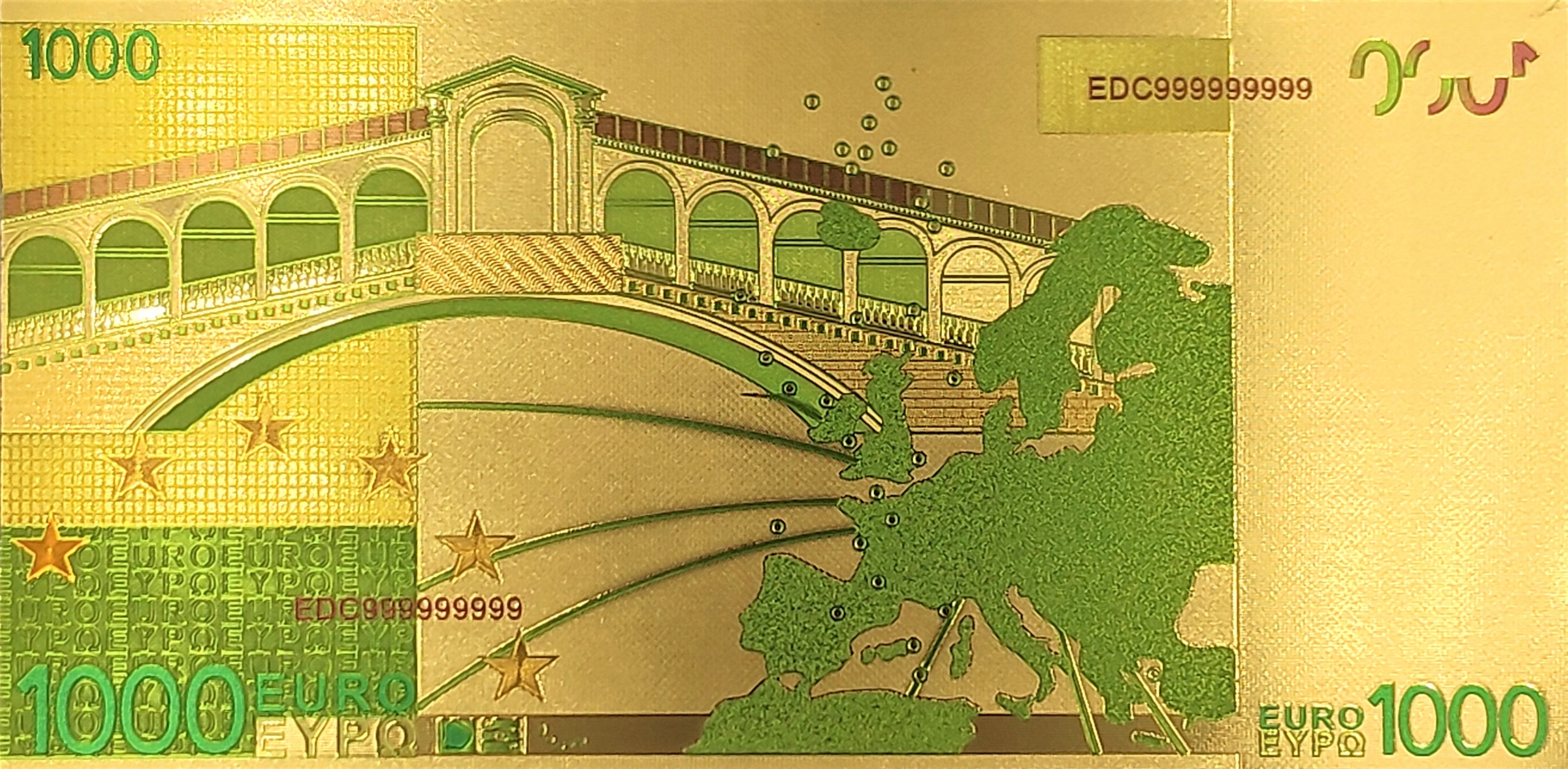 ПОЗОЛОЧЕННАЯ БАНКНОТА 1000 ЕВРО