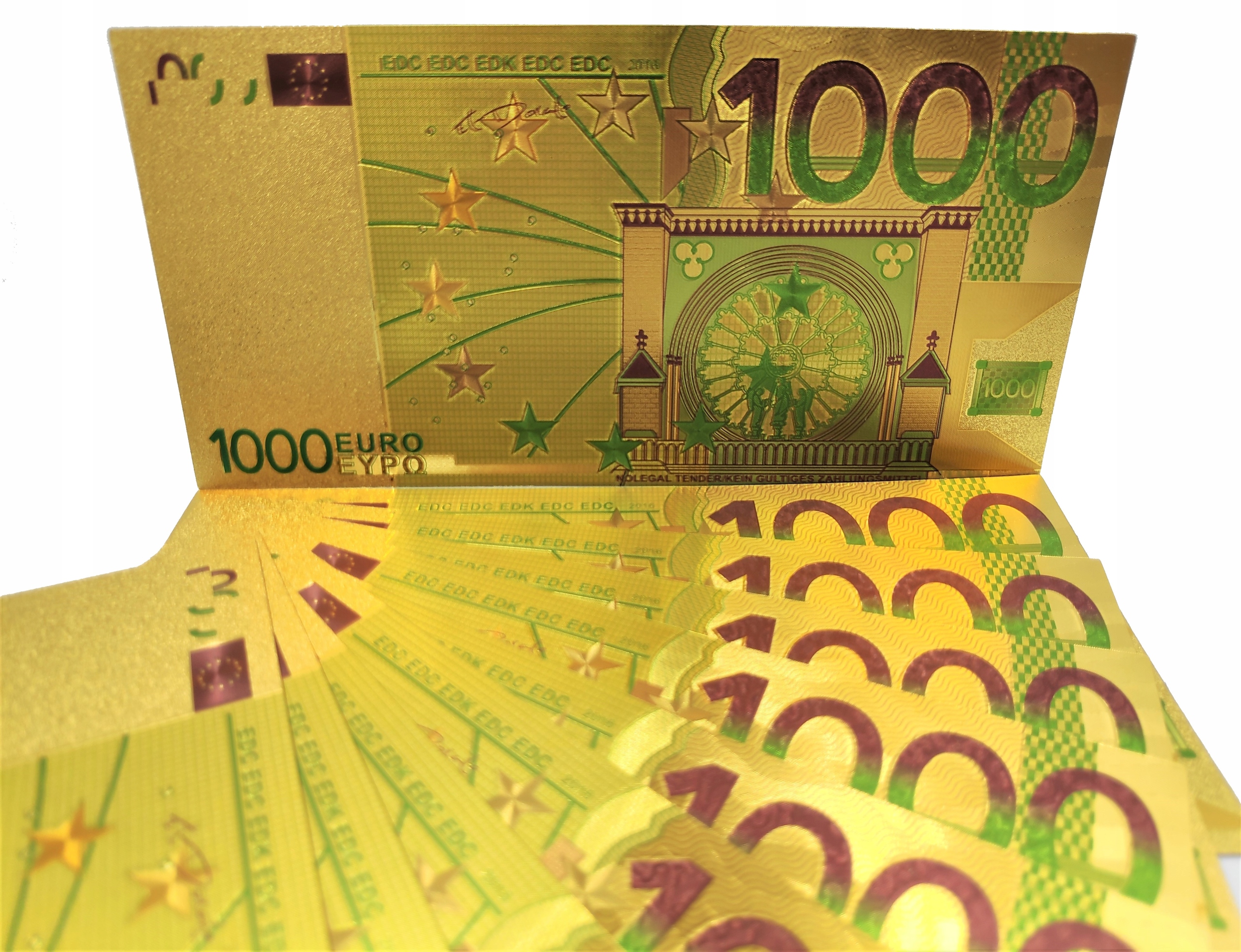 Красивая позолоченная банкнота 1000 ЕВРО.