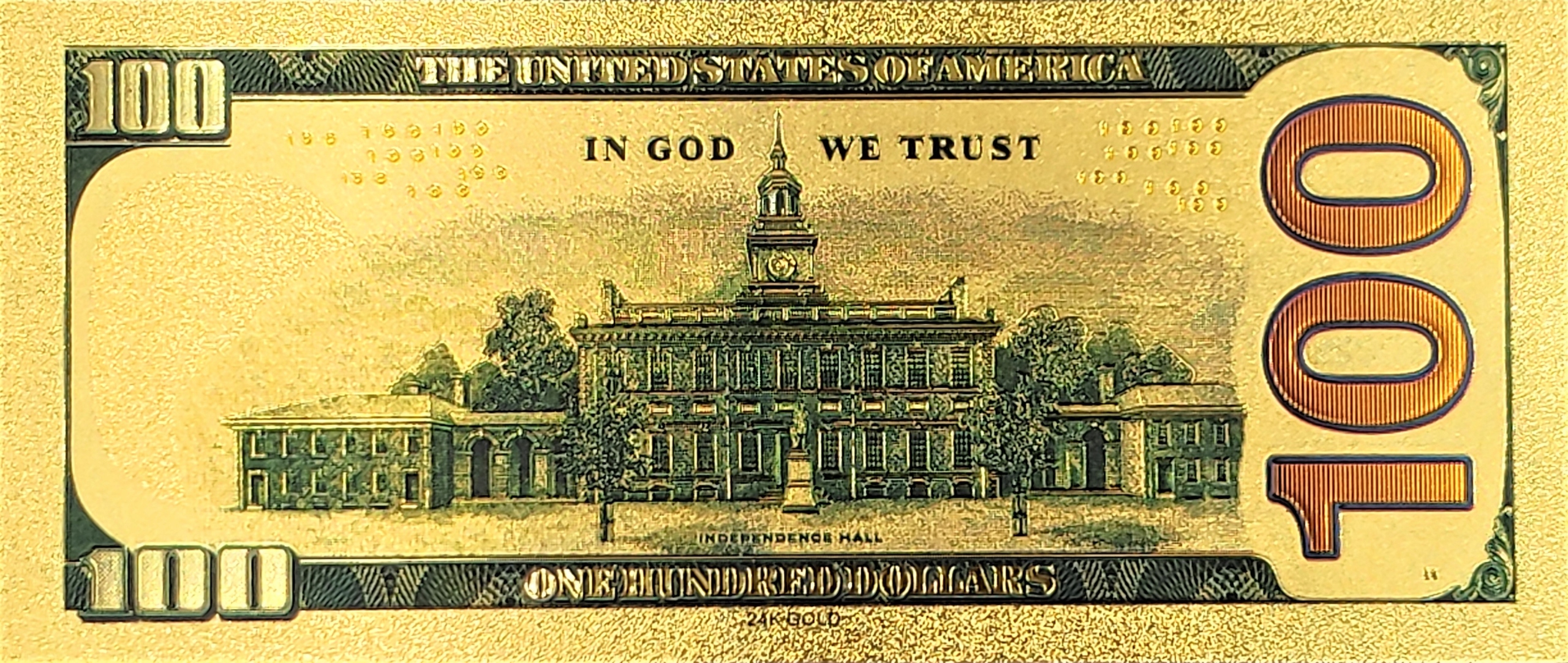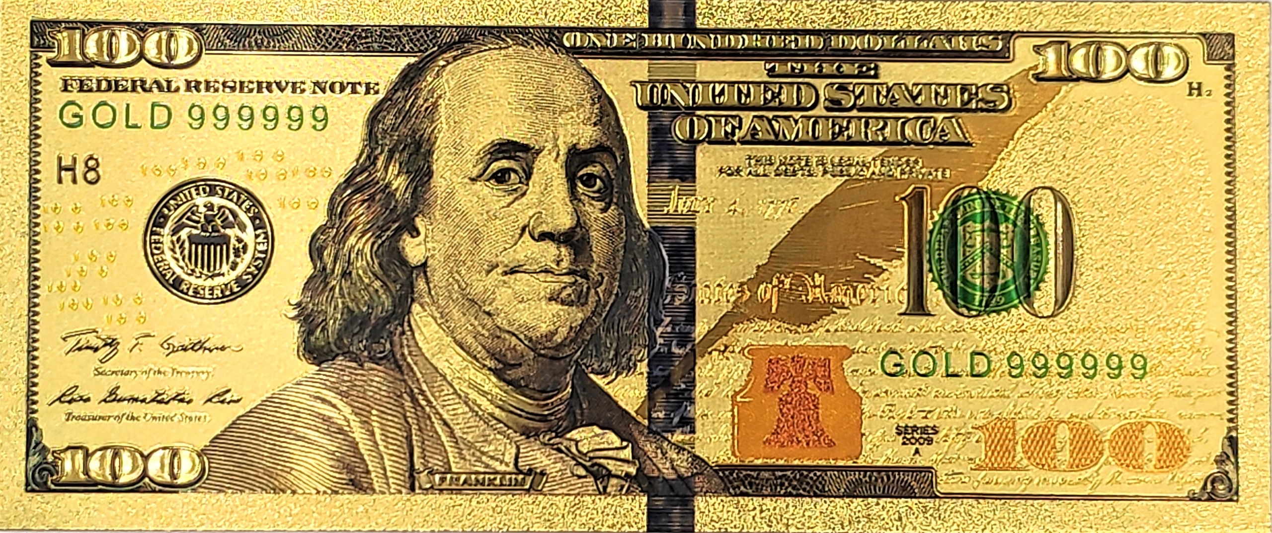 Красивая позолоченная банкнота номиналом 100 долларов.
