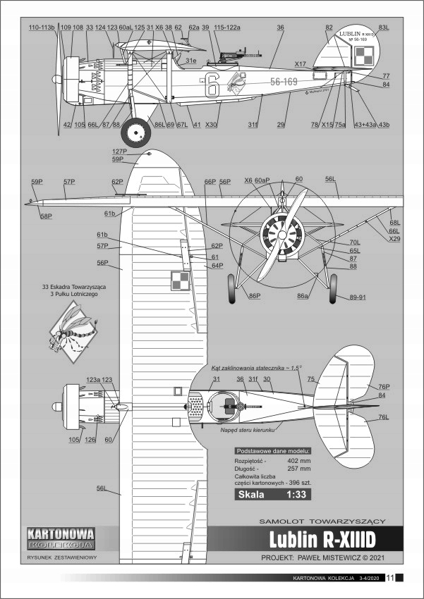 Журнал «Картонная коллекция» 3-4/2020 с картонной моделью польского сопровождения (подключаемого наблюдения) Люблин R-Xiid в маркировке 33 (позже 36) эскадрильи, сопровождающей 3-й воздушный полк из Poznań (1936-39). Модель со средней степенью сложности строительства, среди прочего, богатое оборудование кабины экипажа и разделенных поверхностей рулевого управления (самолеты, ручки). Печать использует серебро. БЕСПЛАТНО: