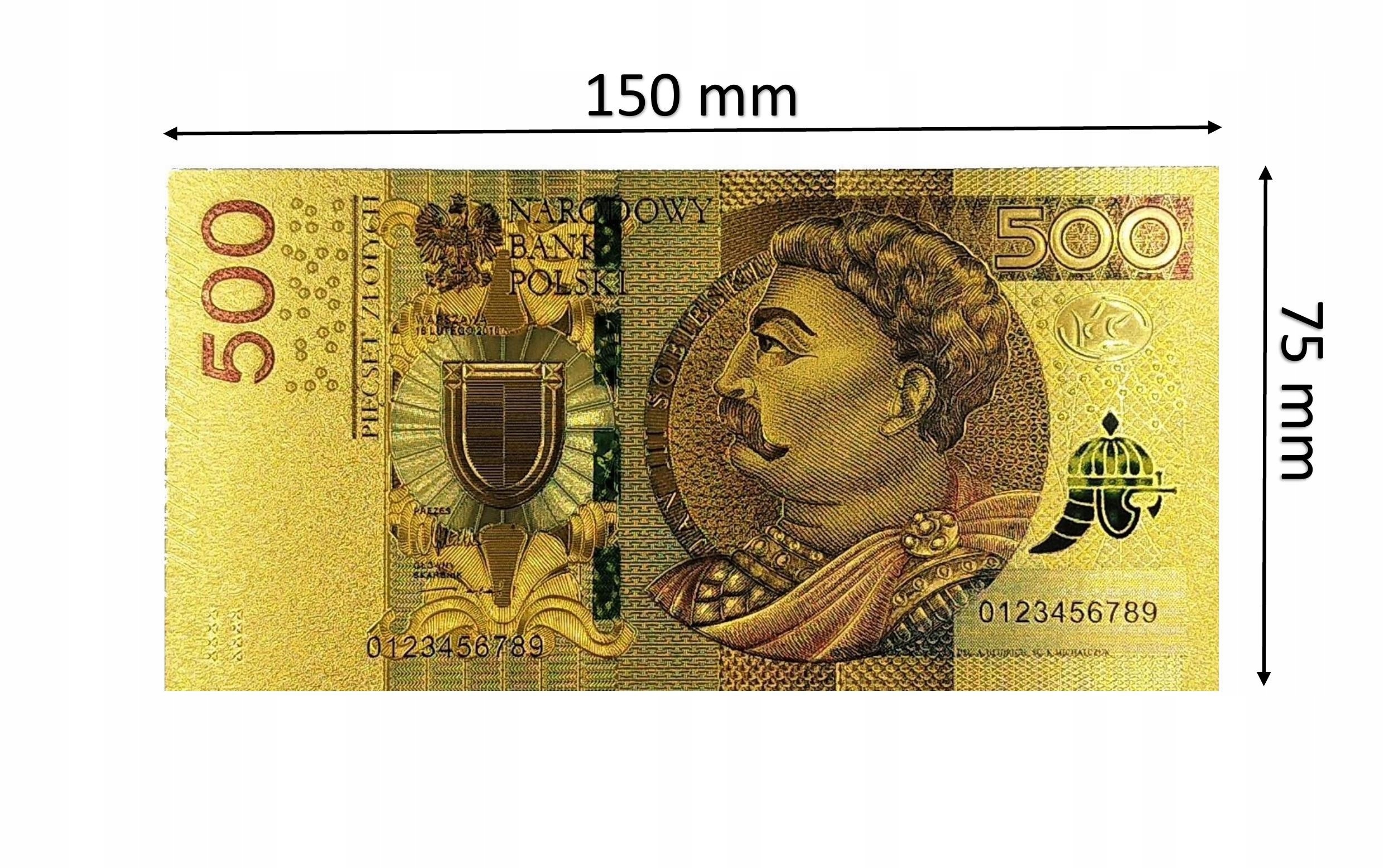 КОЛЕКЦІЯ красивих унікальних позолочених банкнот 500 ZŁOTYCH JAN III SOBESKI