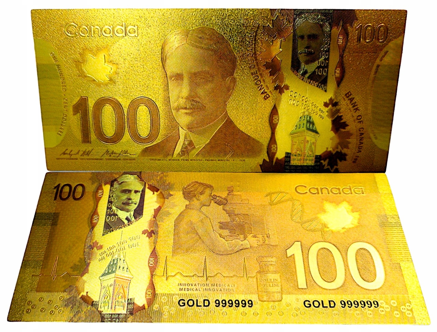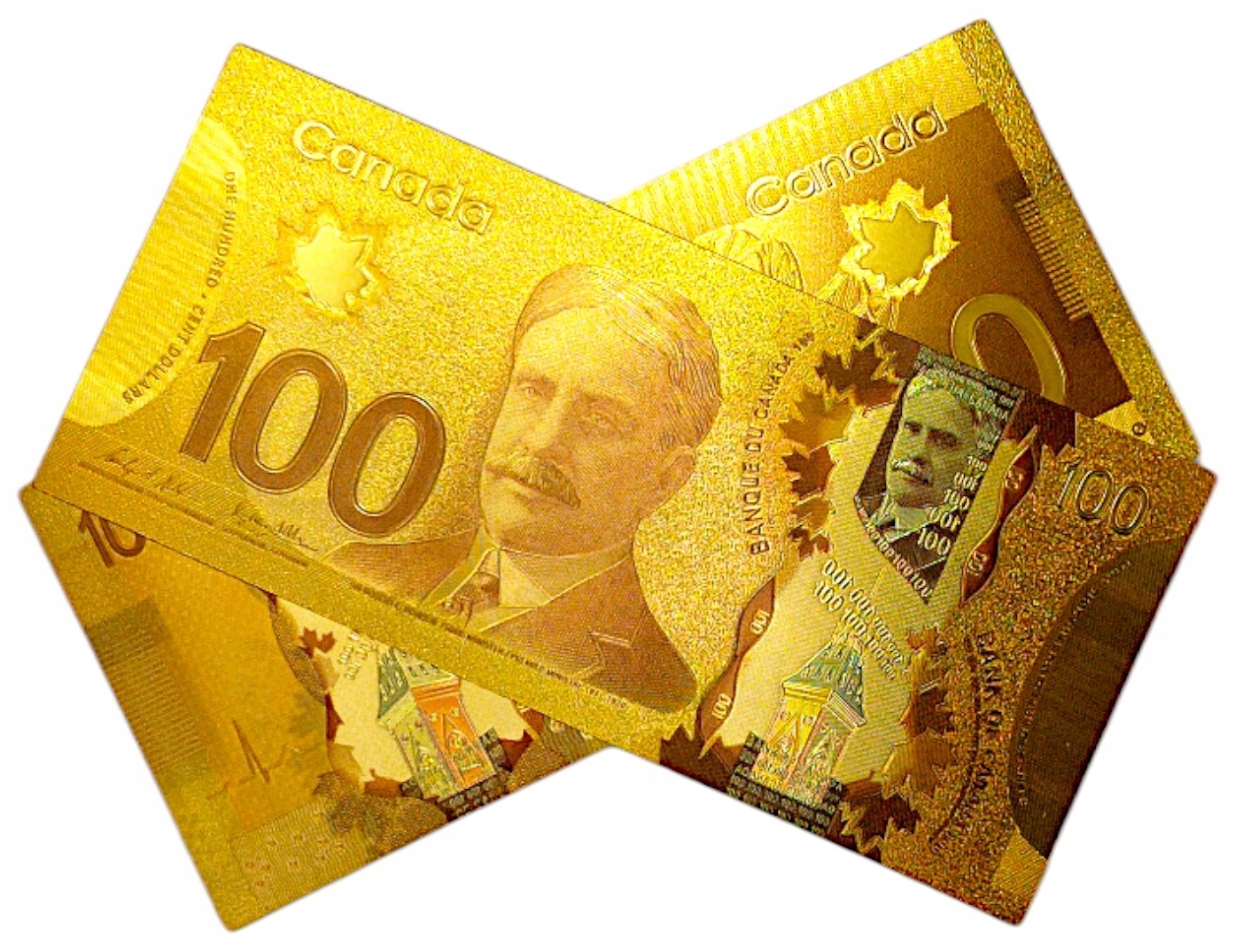 КОЛЕКЦІЯ унікальних позолочених банкнот номіналом 100 ДОЛАРІВ КАНАДИ