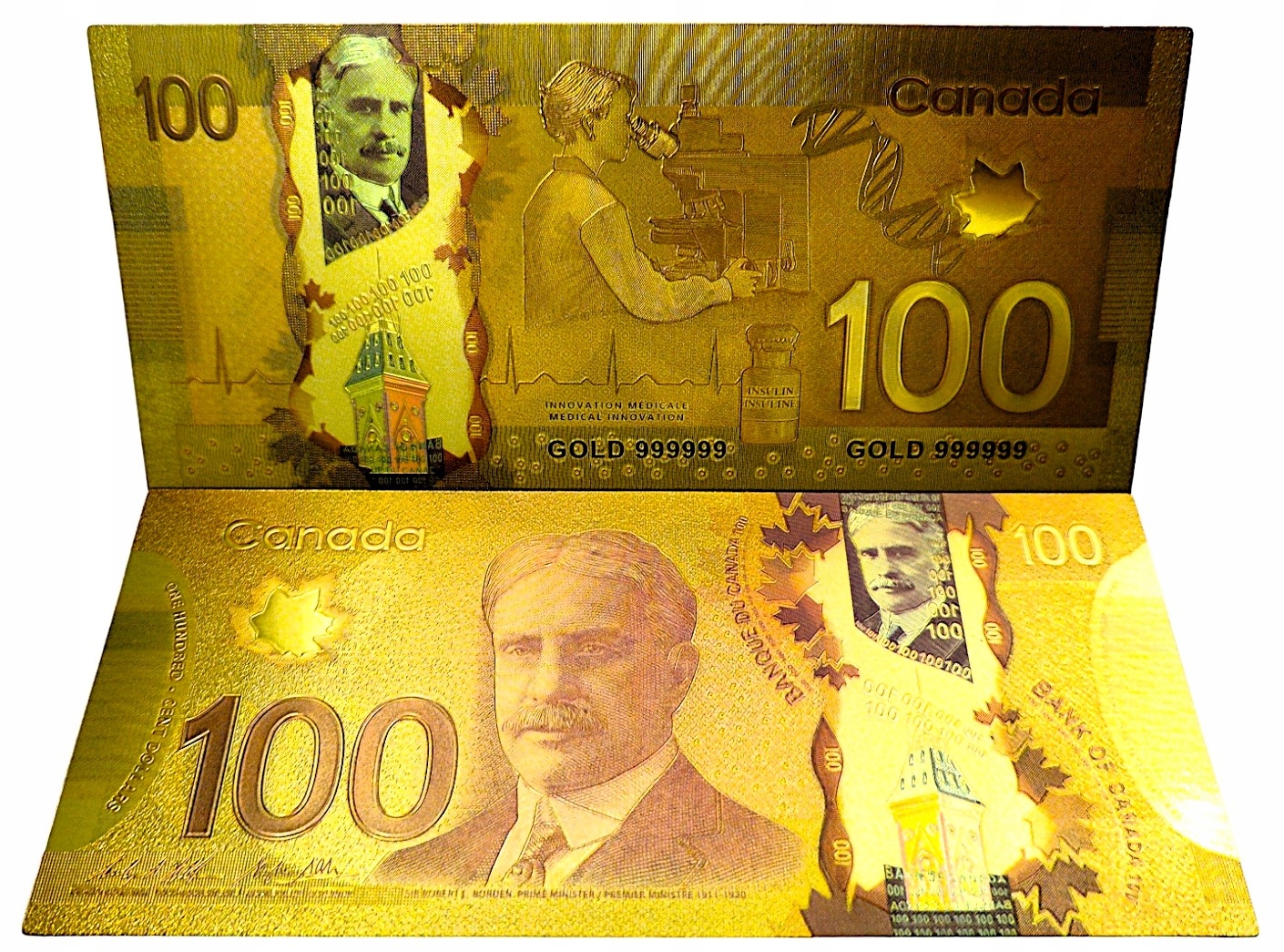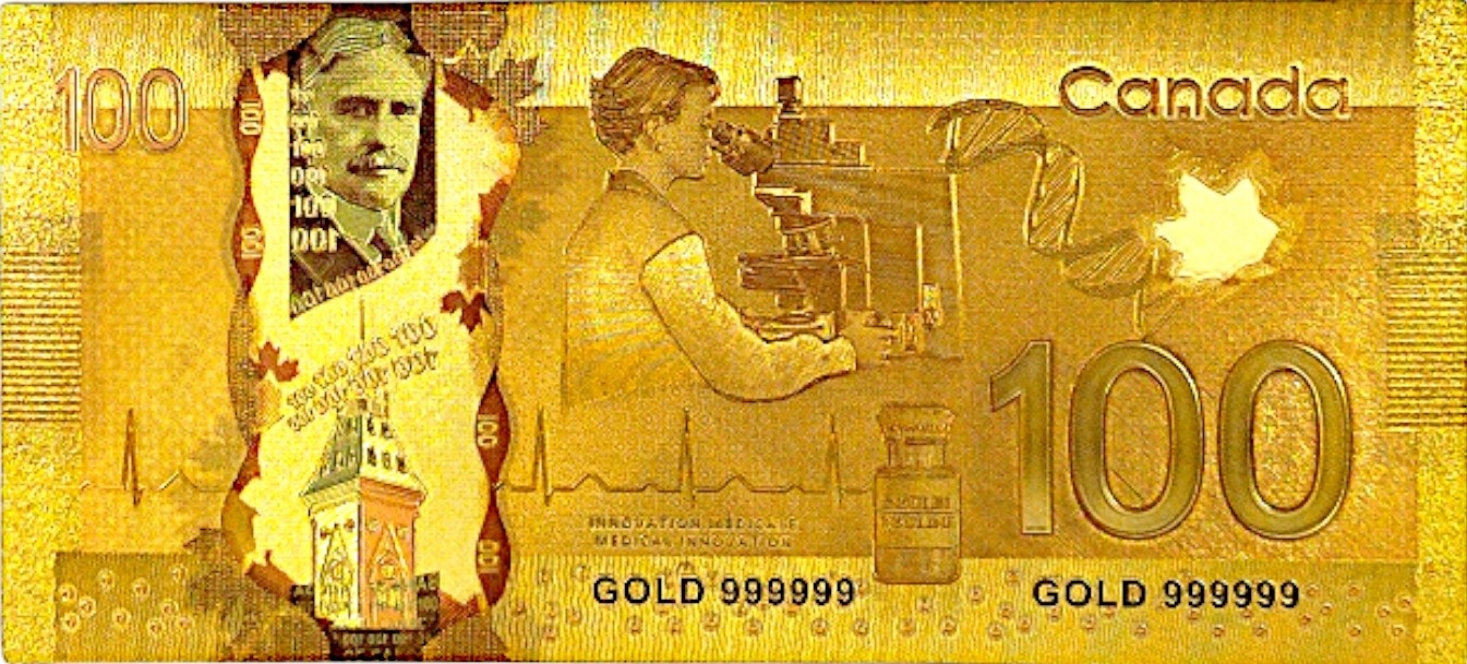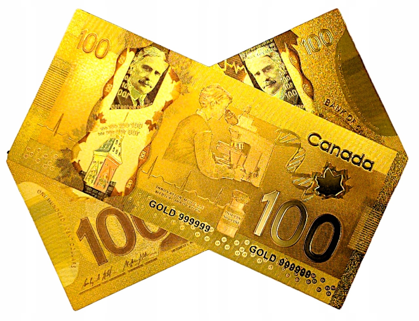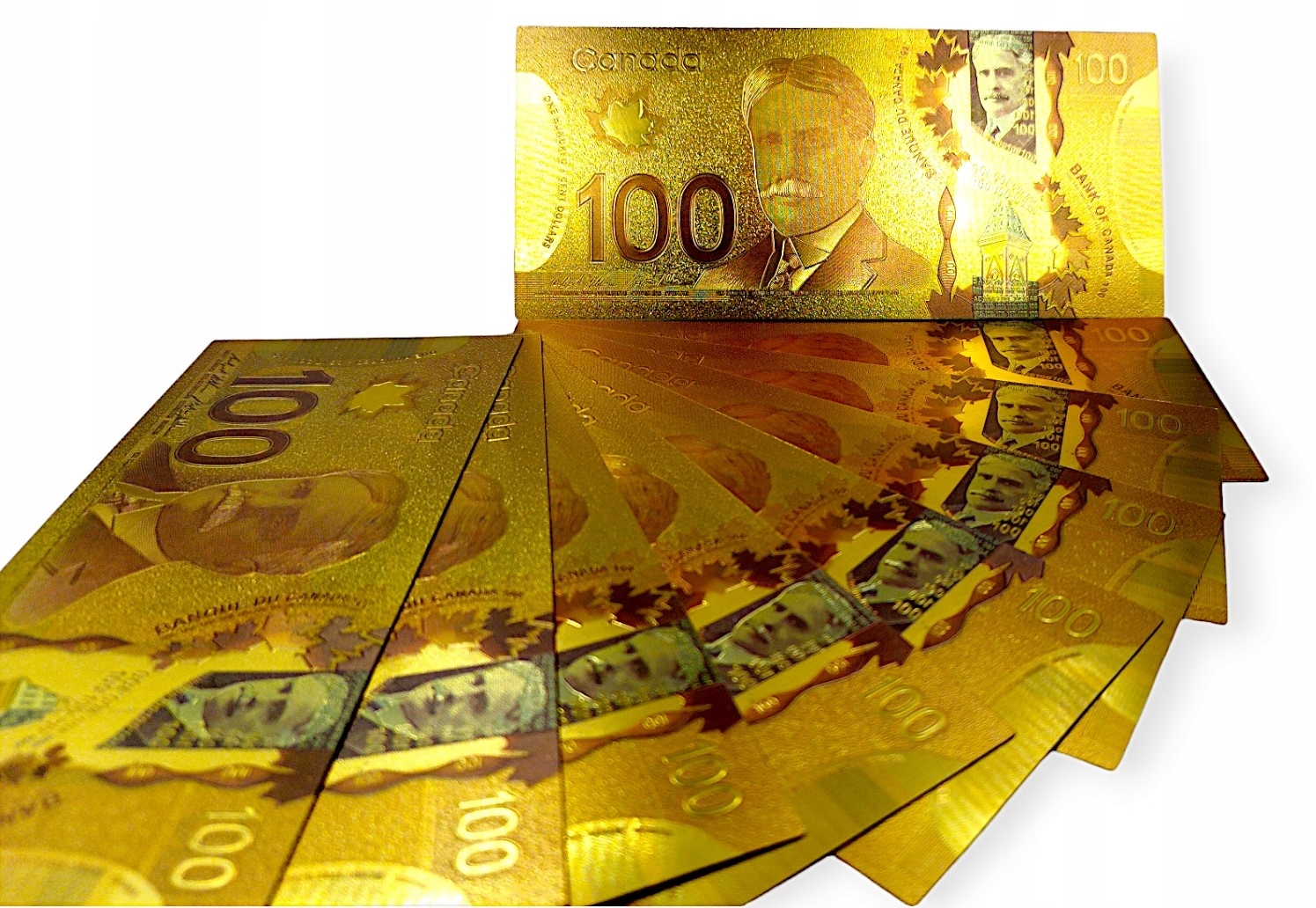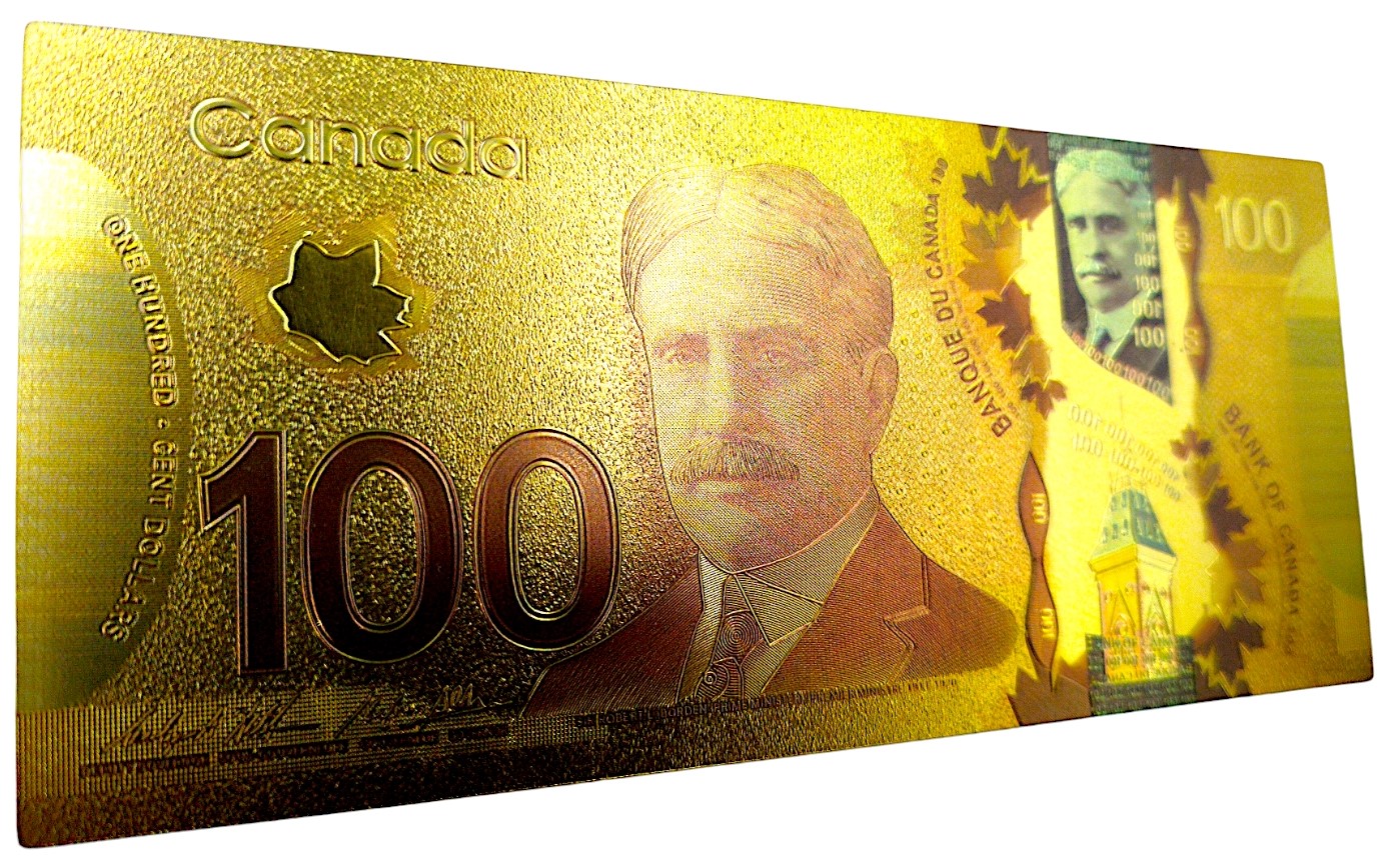 КОЛЕКЦІЯ унікальних позолочених банкнот номіналом 100 ДОЛАРІВ КАНАДИ
