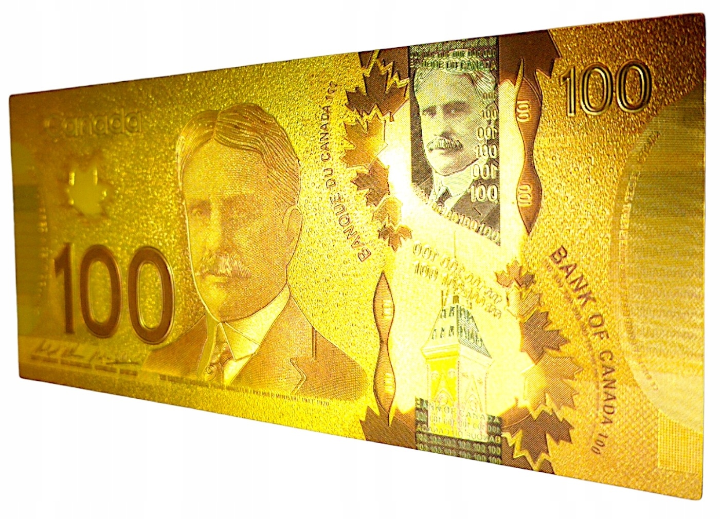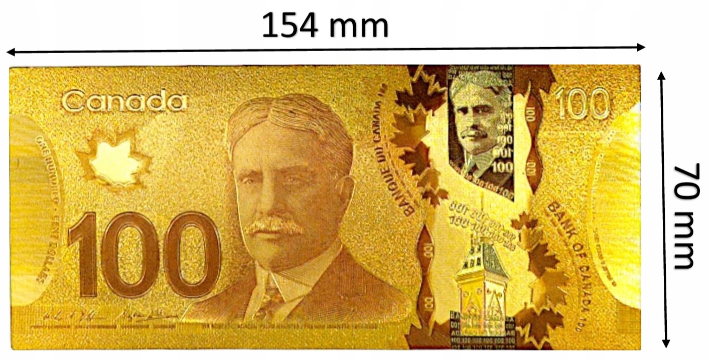 Точная копия канадской банкноты, изготовленная из ПВХ и покрытая золотой фольгой. >/p >