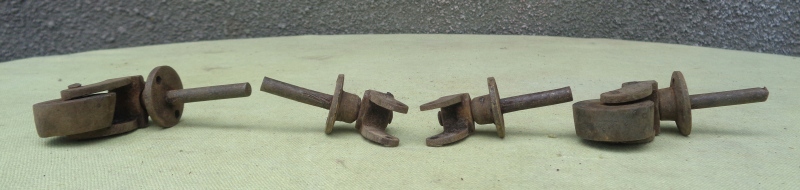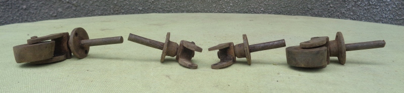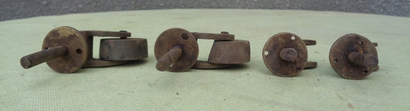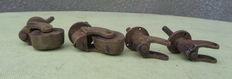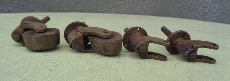 Интересные, интересные, коллекционные четыре веревочных блока 1920-х годов. У двух блоков есть направляющие, а у двух направляющих нет. Направляющие изготовлены из резинового материала. Всем рекомендую этот интересный набор.