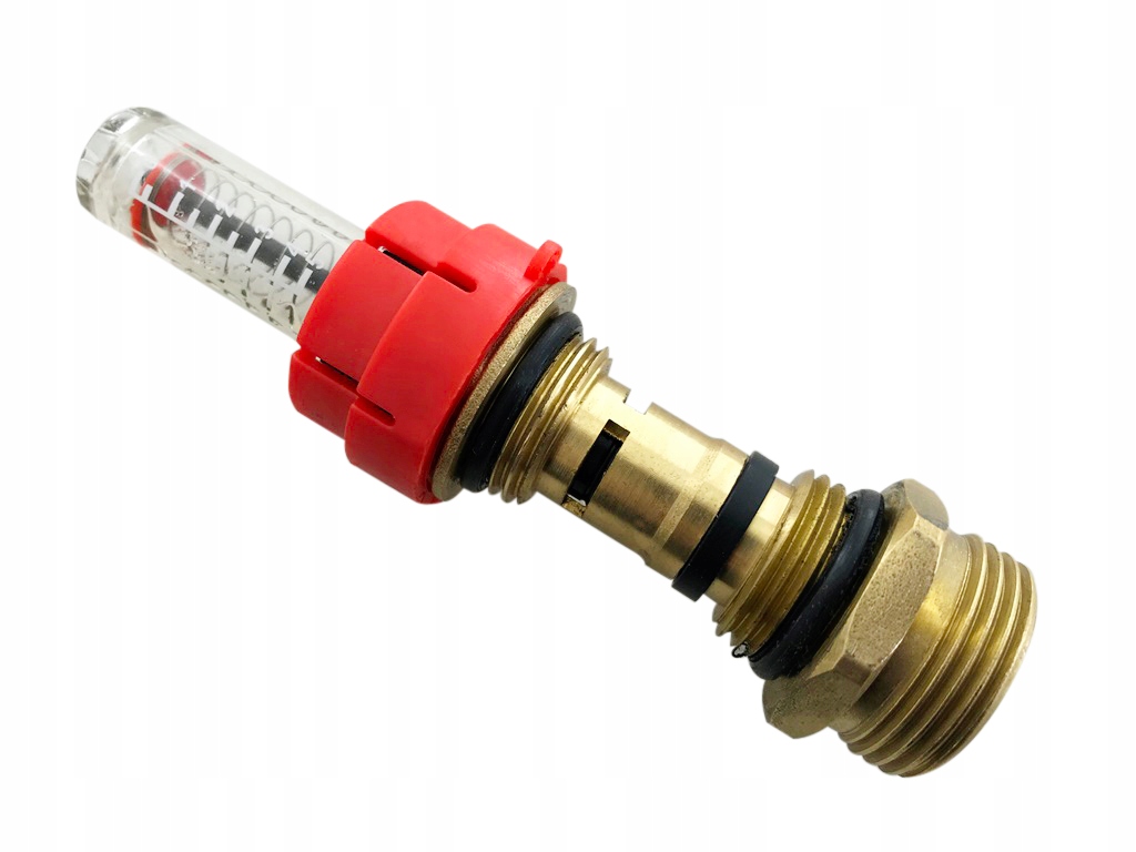 Установлены на подающей балке. Расходомер изготовлен из пластика и латунного корпуса. Ротаметр правильно откалиброван, чтобы можно было считывать фактический расход теплоносителя.